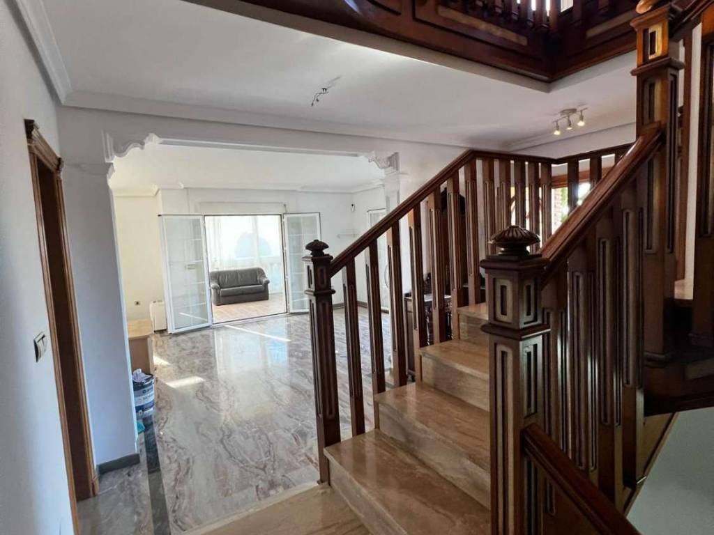 Consta de tres plantas , tiene ascensor, dos cocinas, una para el invierno y otra para el verano, 2 salones , terraza acristalada , cuatro dormitorios, dos baños completos, aseo, terraza, jardín, un vestíbulo amplio, un sótano que cuenta con un quinto dormitorio que puede servir como despacho o espacio de almacenamiento, además de dos trasteros y un garaje con capacidad para dos vehículos, jardín con posibilidad de hacer una piscina , jacuzzi exterior en una de las terrazas .