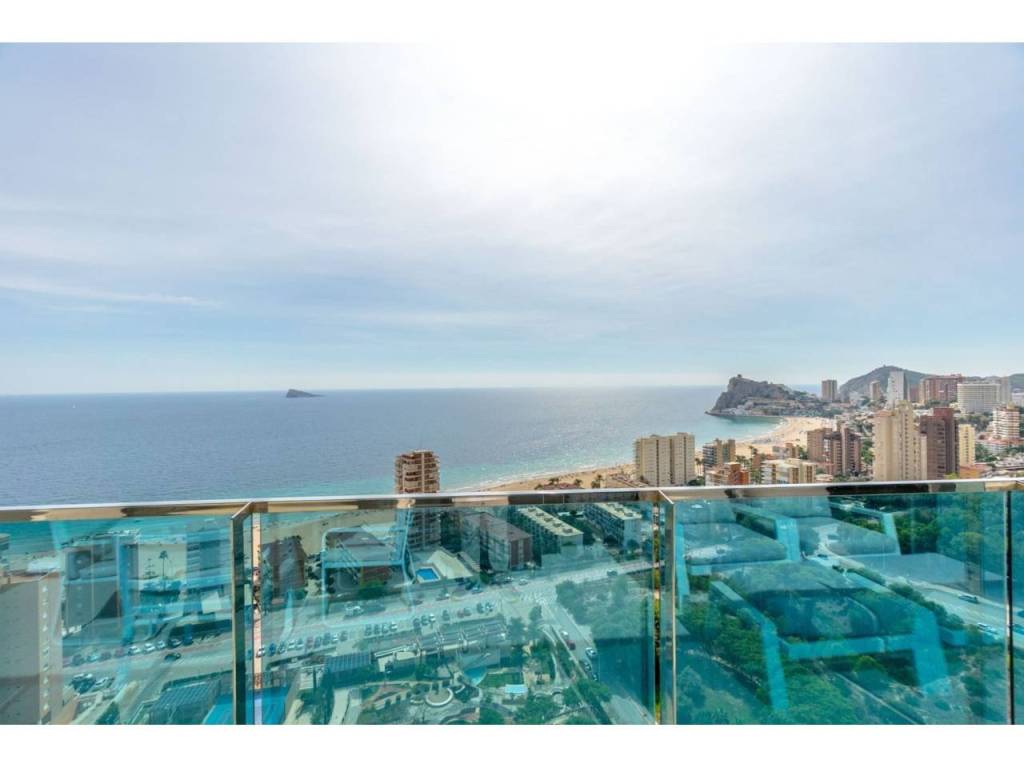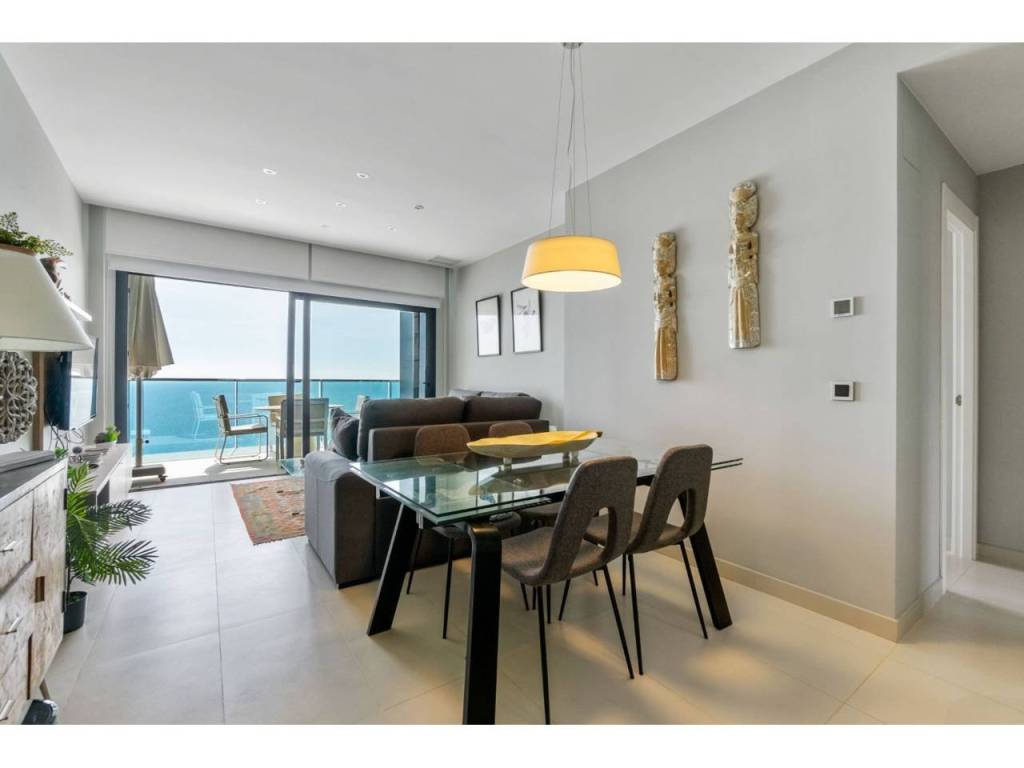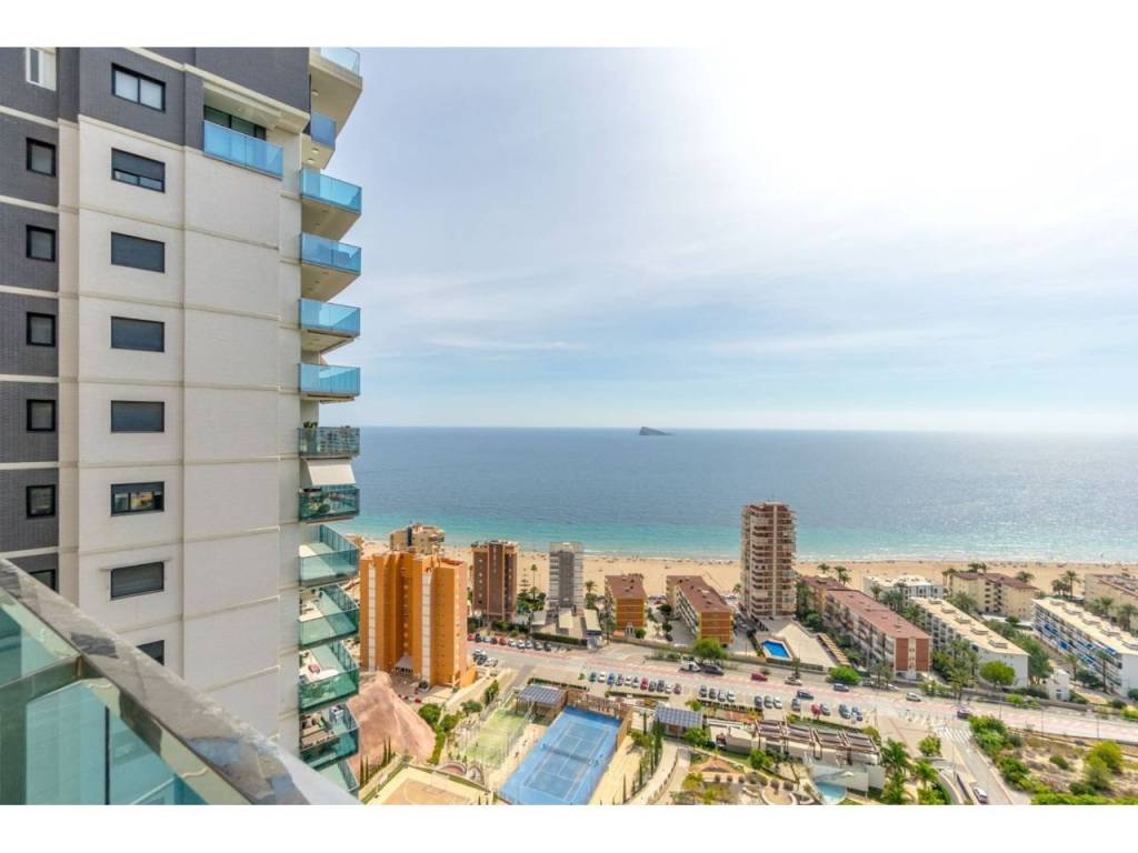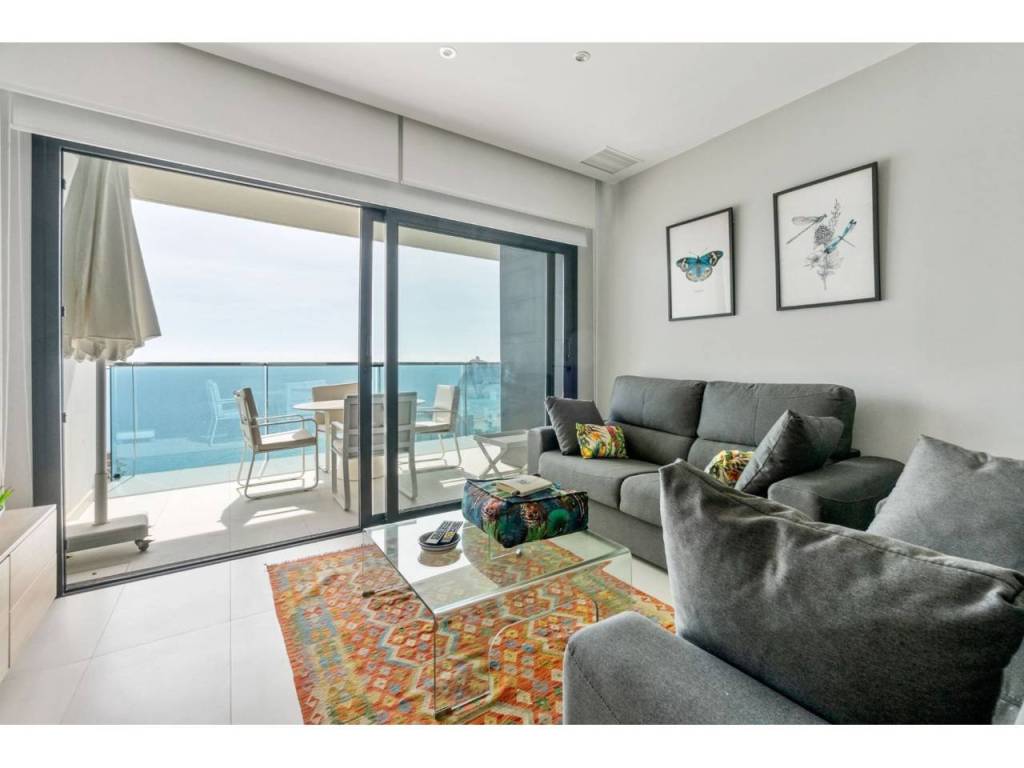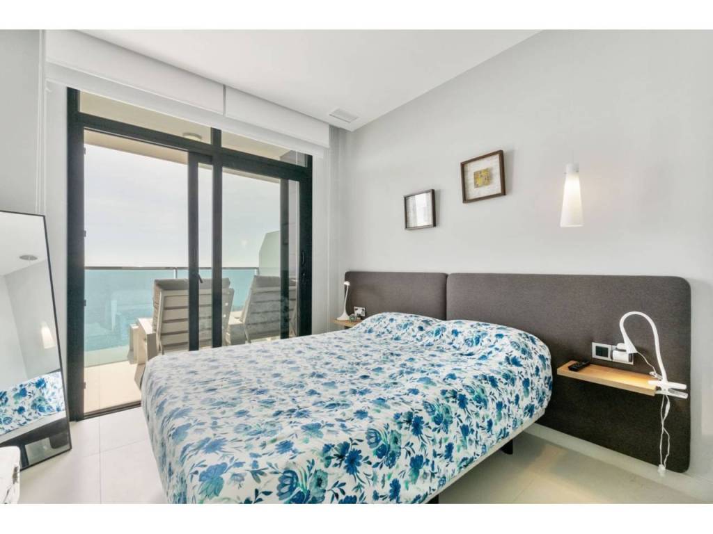 Magnifico apartamento en un conjunto residencial único, a un paso del mar, en segunda línea de playa Poniente de Benidorm. Su diseño moderno, con ventanas panorámicas y al-tos techos crean la máxima sensación de espacio, llenando la casa de luz natural y le permite disfrutar de las mejores vistas al infinito mar desde todas las estancias de la casa.