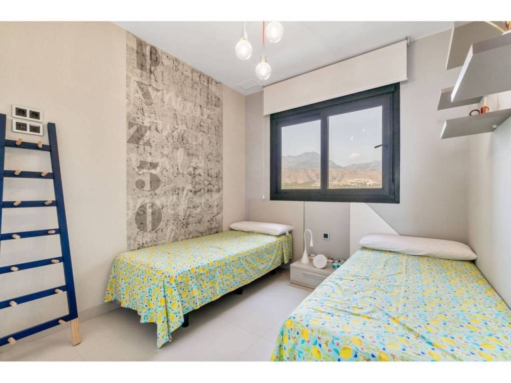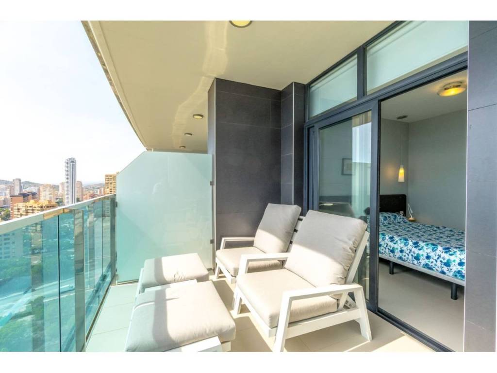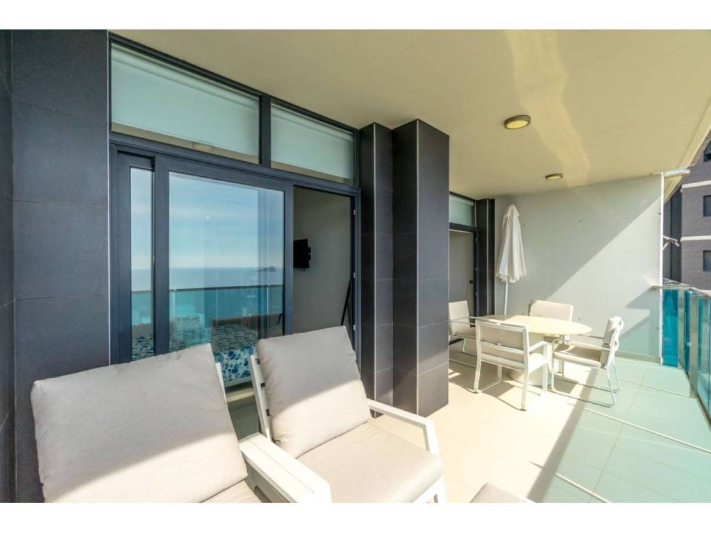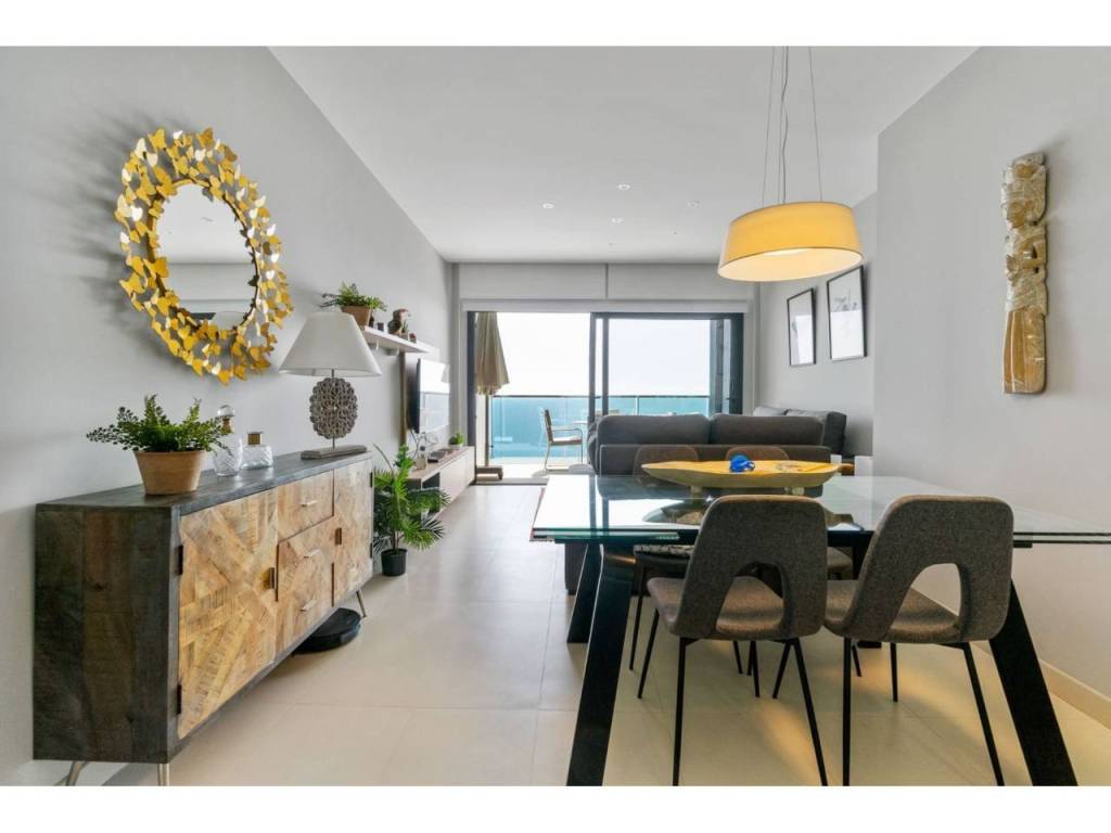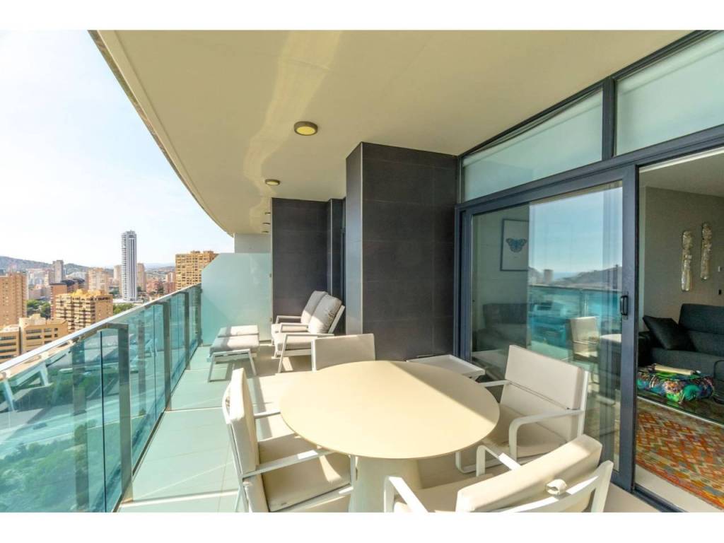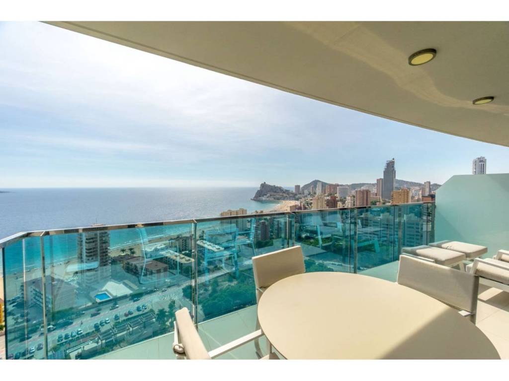 Magnifico apartamento en un conjunto residencial único, a un paso del mar, en segunda línea de playa Poniente de Benidorm. Su diseño moderno, con ventanas panorámicas y al-tos techos crean la máxima sensación de espacio, llenando la casa de luz natural y le permite disfrutar de las mejores vistas al infinito mar desde todas las estancias de la casa.