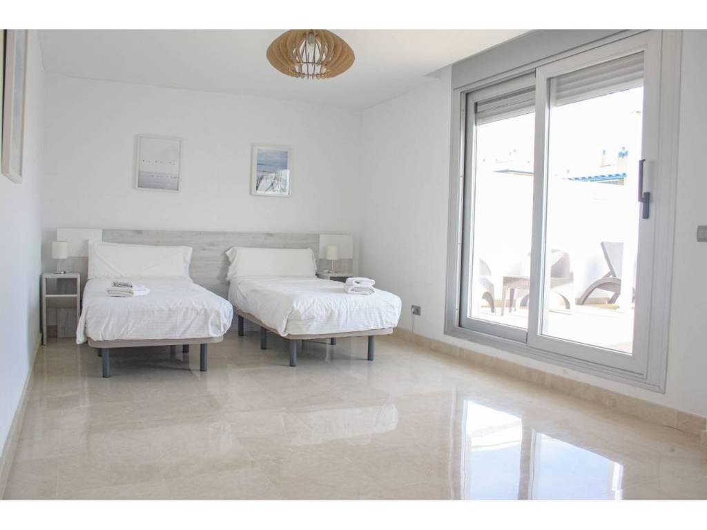 En la planta superior, te espera un gran solárium privado junto a una tercera habitación que puedes destinar a dormitorio, despacho o zona de relax. Un espacio versátil, perfecto para desconectar, celebrar con amigos o simplemente contemplar el atardecer.