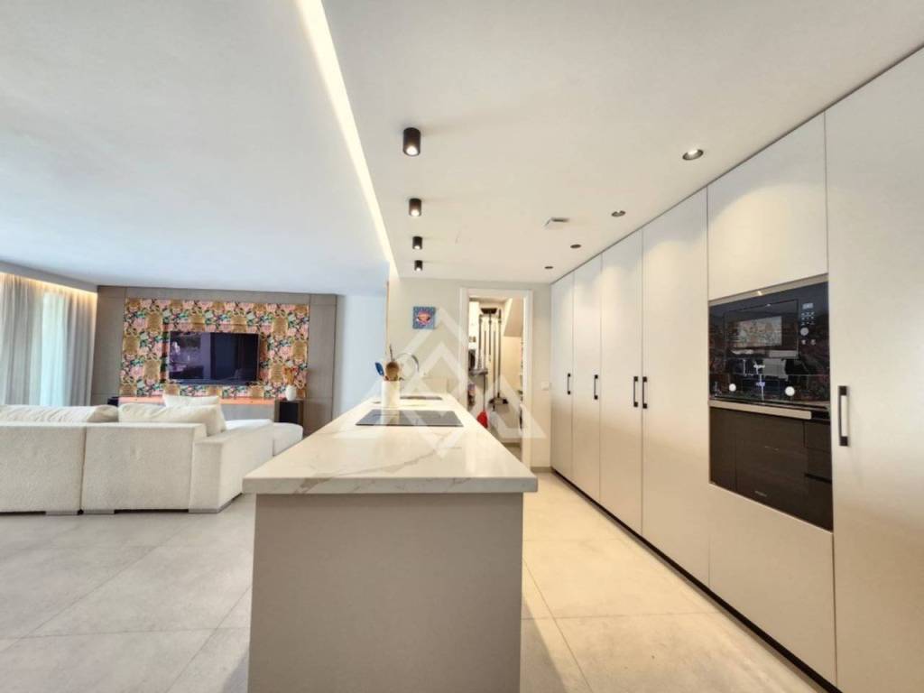 La vivienda destaca por su diseño contemporáneo y funcional, donde la luminosidad y la calidad de los materiales son protagonistas. El acceso a la propiedad conduce a un elegante espacio de concepto abierto que integra el salón y la cocina, esta última totalmente equipada con electrodomésticos Whirlpool de alta gama. Desde esta zona se accede a una terraza cubierta, ideal para disfrutar del clima mediterráneo durante cualquier época del año.