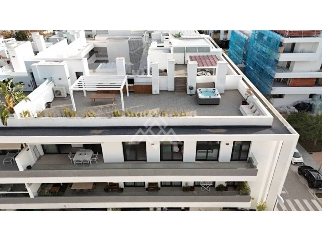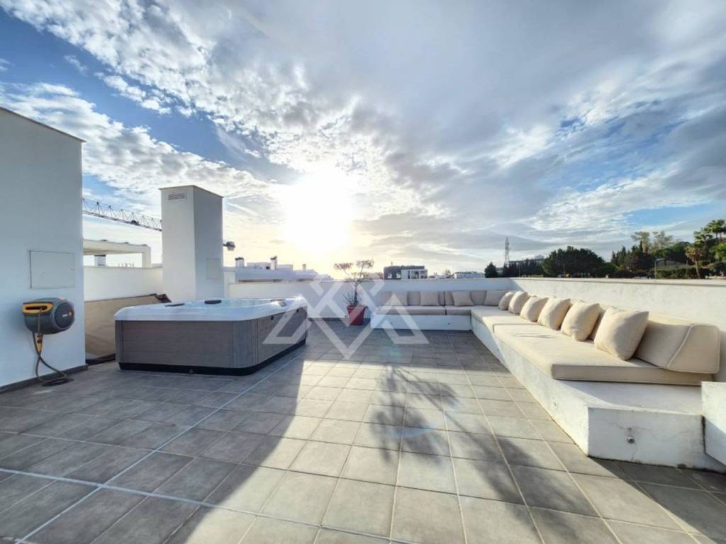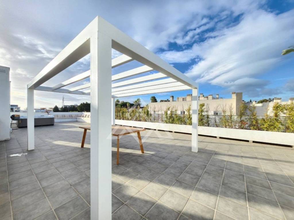 En la planta superior se encuentra uno de los grandes atractivos de la propiedad: un impresionante solárium privado de aproximadamente 150 m². Este espacio exterior ofrece infinitas posibilidades, desde zonas de descanso y comedor al aire libre hasta un área chill-out o de ocio, convirtiéndose en el lugar perfecto para disfrutar de reuniones sociales o momentos de relax con vistas abiertas.