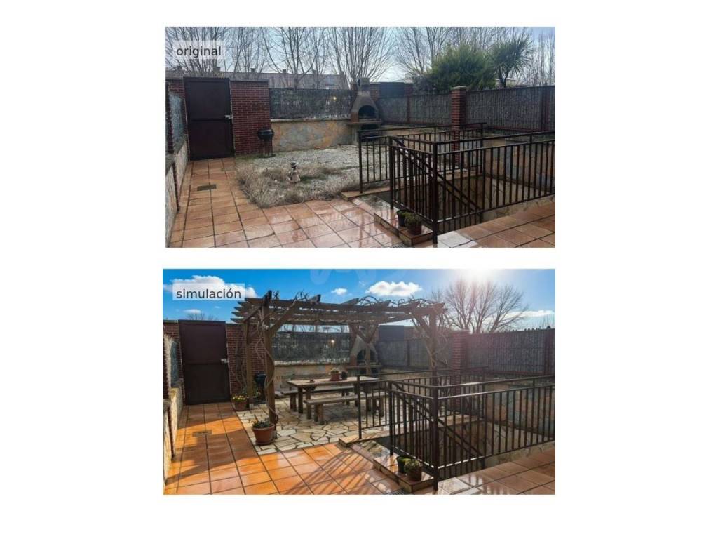 La casa dispone de garaje para dos vehículos, patio delantero y trasero, barbacoa exterior ideal para reuniones al aire libre, pero además tiene acceso al merendero directamente desde el patio sin necesidad de que las visitas pasen por la vivienda. El merendero cuenta con estufa con horno, lo que la convierte en la casa ideal para reuniones en familia y con amigos.