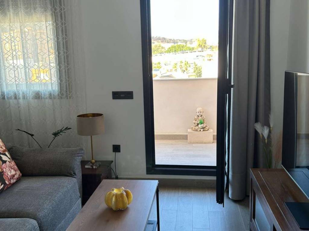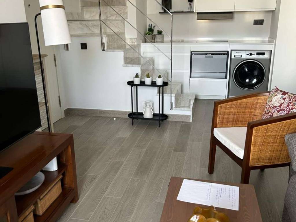 La planta principal se abre a un amplio y acogedor espacio diáfano que integra salón, comedor y cocina de estilo americano, creando un ambiente moderno y funcional. En este nivel se encuentra también un baño completo con ducha y el acceso a una terraza descubierta de 9,7 m, perfecta para relajarse al aire libre, disfrutar del clima mediterráneo y contemplar vistas despejadas.