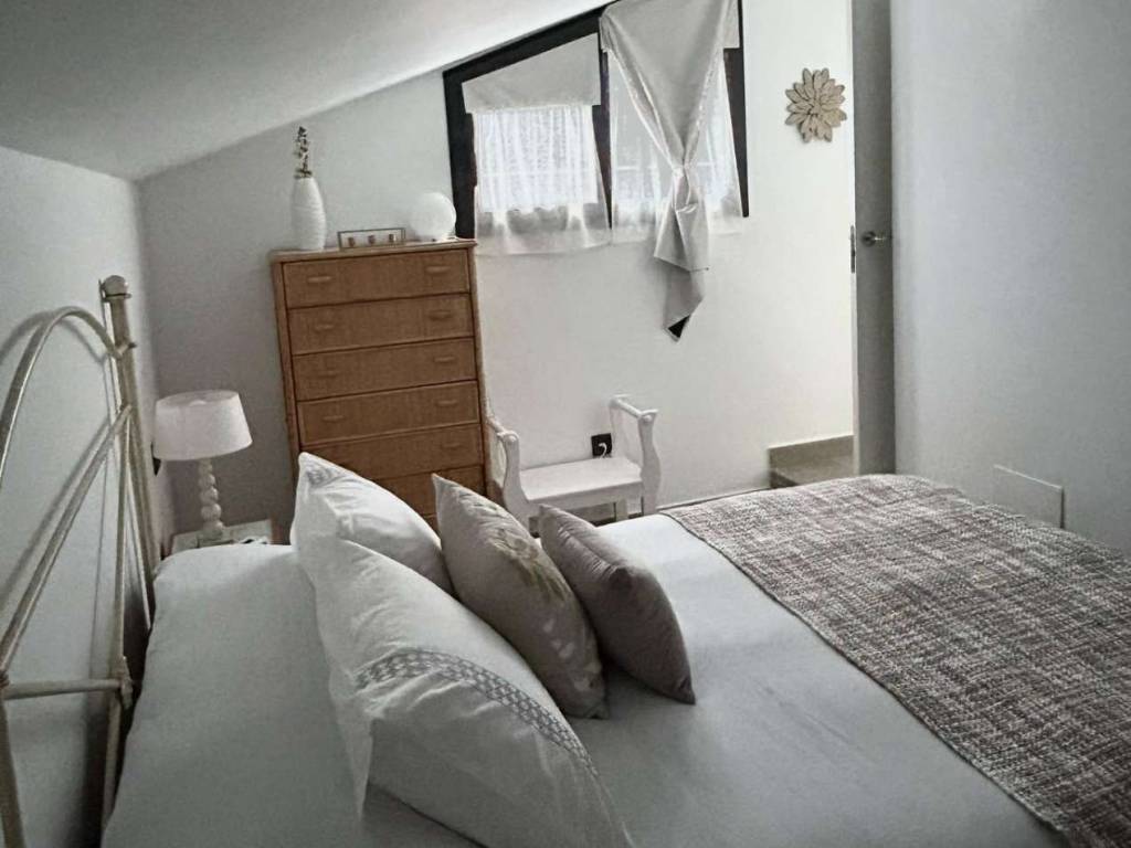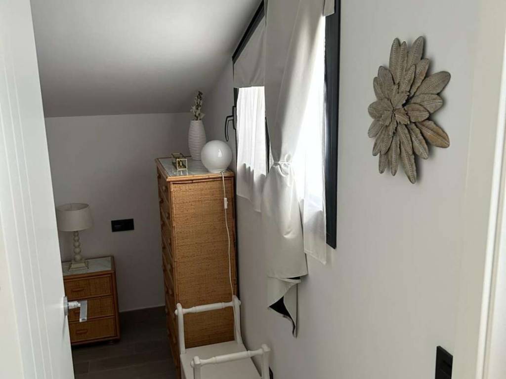 En la planta superior se distribuyen dos dormitorios, uno de ellos adaptado actualmente como vestidor, junto a un segundo baño completo con ducha. Desde esta planta, unas escaleras conducen a una segunda terraza descubierta de 7,6 m, con acceso directo a la piscina comunitaria situada en la cubierta del edificio. Este espacio ofrece un entorno exclusivo con vistas abiertas y zona de aseo, ideal para el descanso y el ocio.