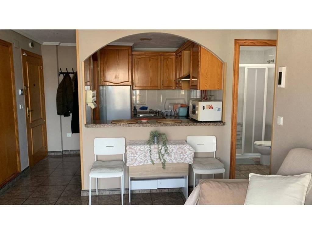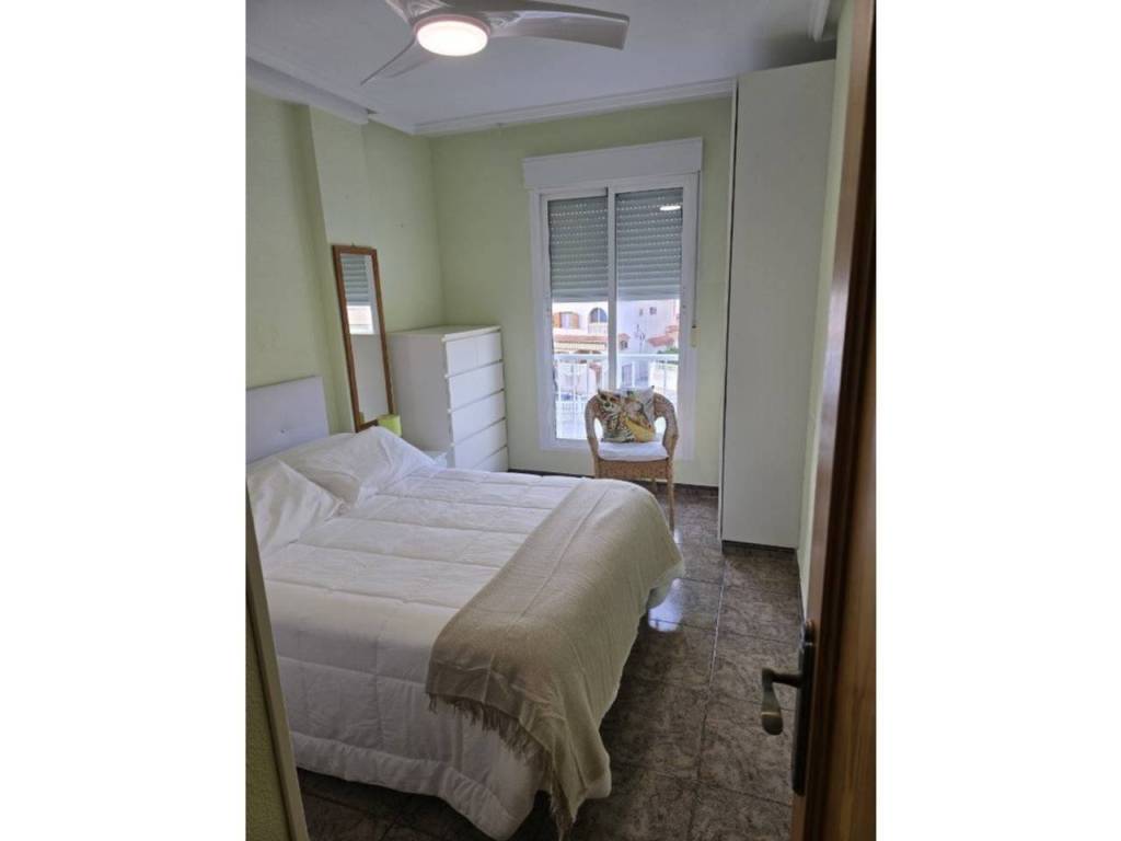 cuenta con dos dormitorios, uno con cama doble, el segundo con dos camas individuales, mas el sofá cama, salón con cocina americana, baño con ducha, lavadero en terraza comunitaria con lavadora y secadora, dispone de plaza de parquing.