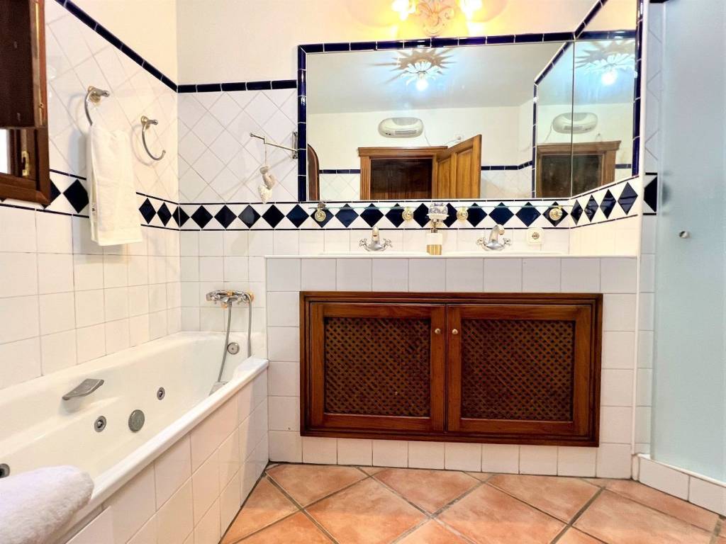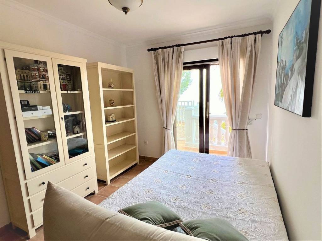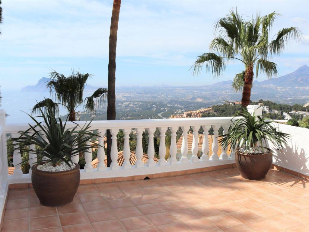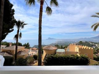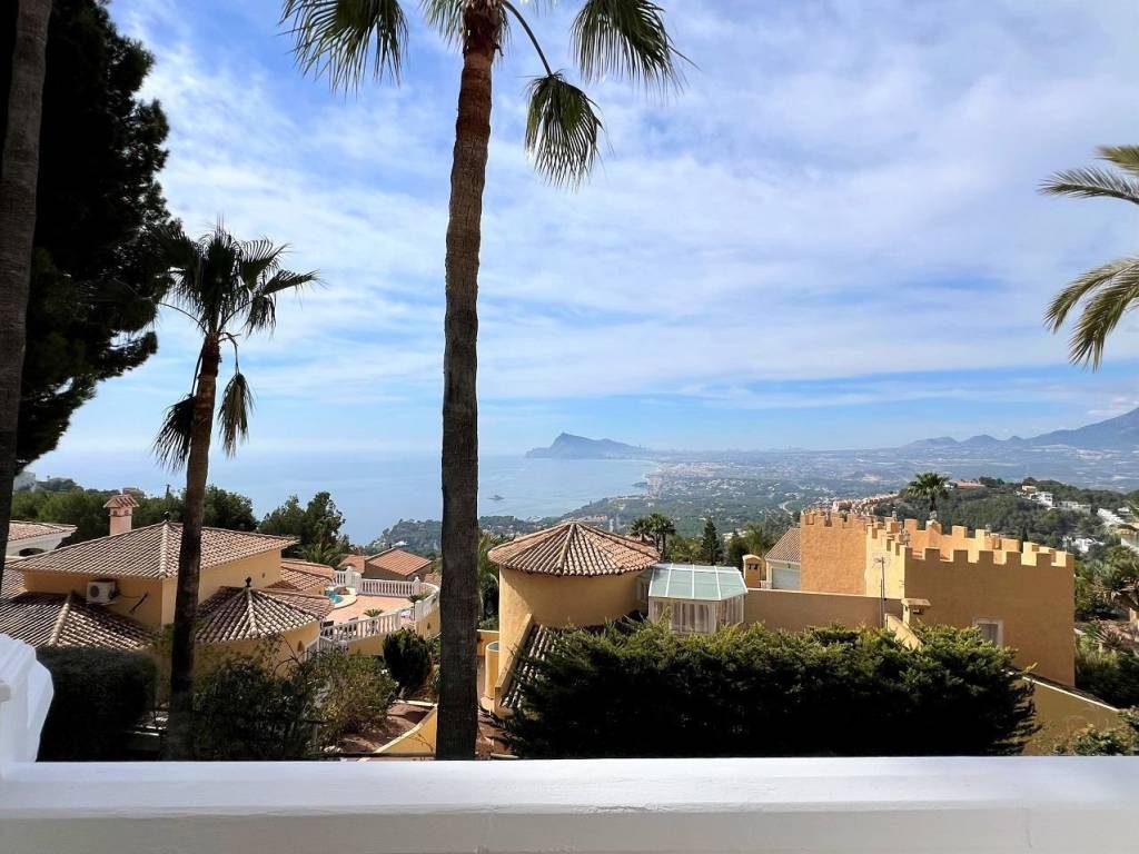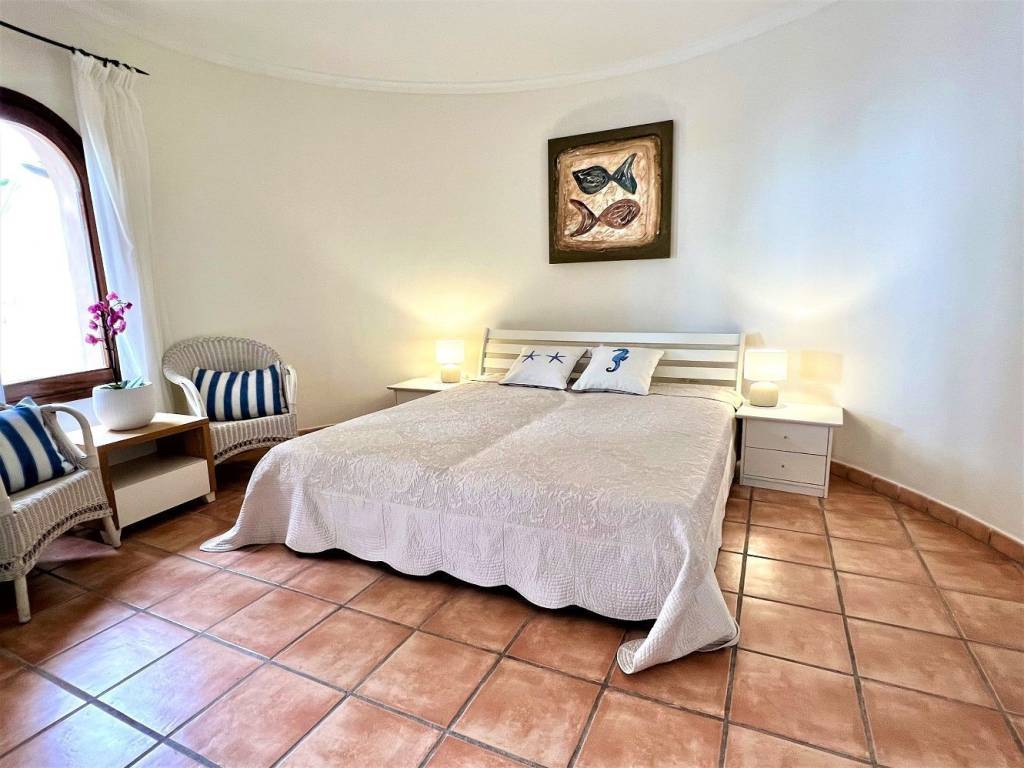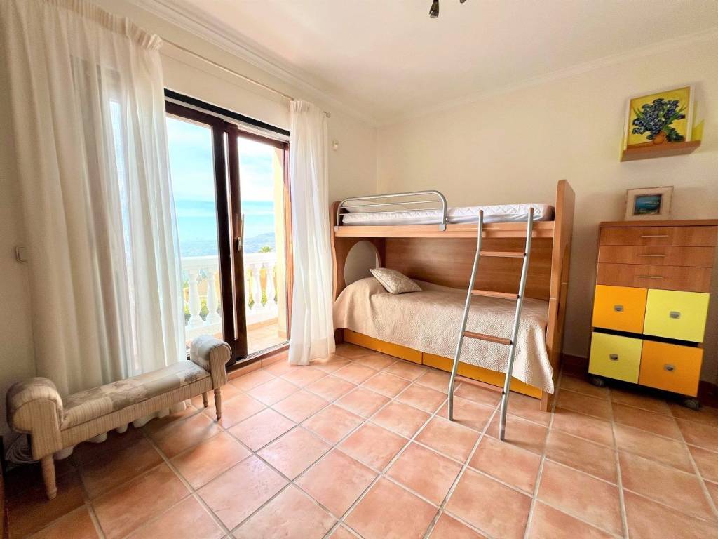 Se encuentra en una urbanización privada con vigilancia 24h. Zona tranquila con agradables vistas. Consta de 4 dormitorios y 3 baños, en planta principal está la entrada y se accede al salón, cocina, terraza y un dormitorio con el baño en suite. todo en el mismo nivel. en la planta de abajo están dos dormitorios con un baño y balcones con vistas al mar, desde ahí se accede a la zona de piscina. Frente a la piscina hay un apartamento con un dormitorio, baño en suite, salón comedor con una pequeña cocina y un Sauna, todo frente a la terraza de la piscina donde está una zona chill out con horno, barbacoa y todo lo necesario para pasar una velada estupenda frente a la piscina.