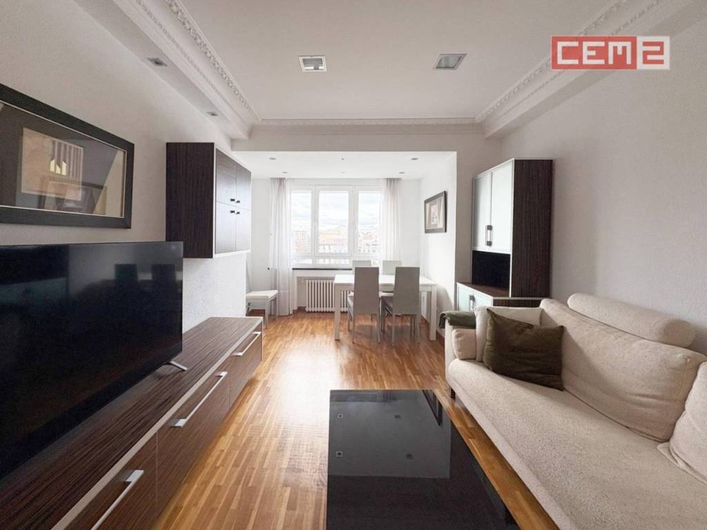CEM2 presenta esta exclusiva vivienda reformada y situada en la emblemática plaza del Castillo y con vistas tanto a la plaza como a la calle Estafeta, en una zona inmejorable, pues tiene todo a su alcance: comercios, zonas de ocio y cultura e infinidad de servicios a un paso.