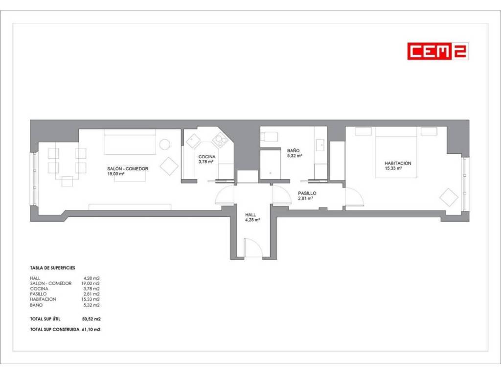 La distribución de la vivienda es muy sencilla y clara, integrando la cocina en el salón comedor, aunque separada por un vidrio, para mejorar la conexión e iluminación. así como para aumentar el aprovechamiento de la superficie de esta agradable zona de día. Al otro lado del hall de acceso, encontramos tanto a la amplia habitación doble como el baño completo con la lavandería. El piso cuenta con varios armarios empotrados para implementar la capacidad de almacenaje. En resumen, la reforma fue pensada al detalle y te va a encantar.