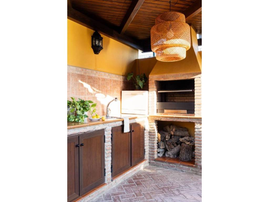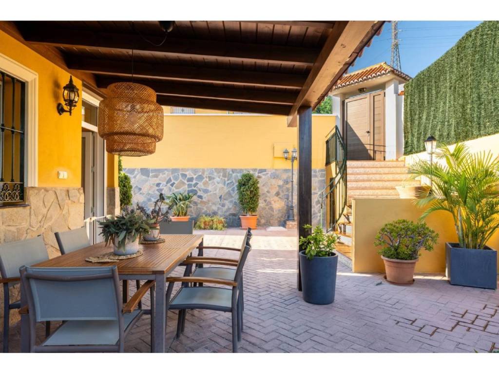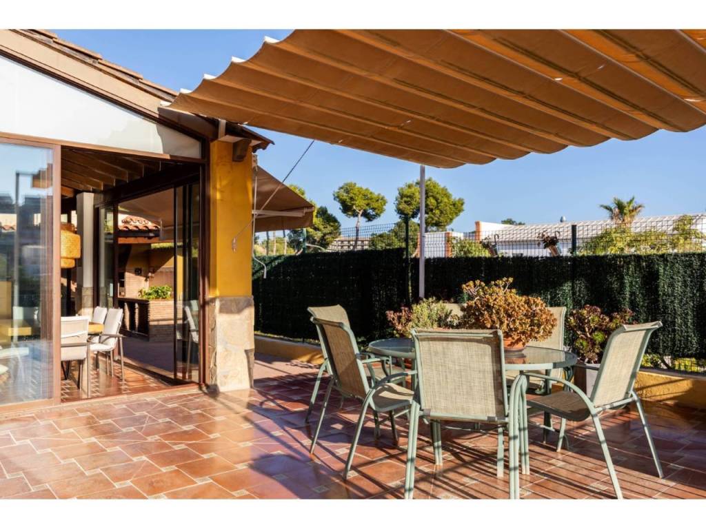 La casa, orientada al sur, ofrece un estilo de vida cómodo y práctico para familias con niños. Dispone de parcela con piscina soleada, zona de solárium con césped artificial, un bonito jardín con flores y árboles frutales —mandarino y limonero—, además de una cuidada zona de barbacoa con alacena y un amplio porche con dos ambientes ideales para reuniones y cenas al aire libre.