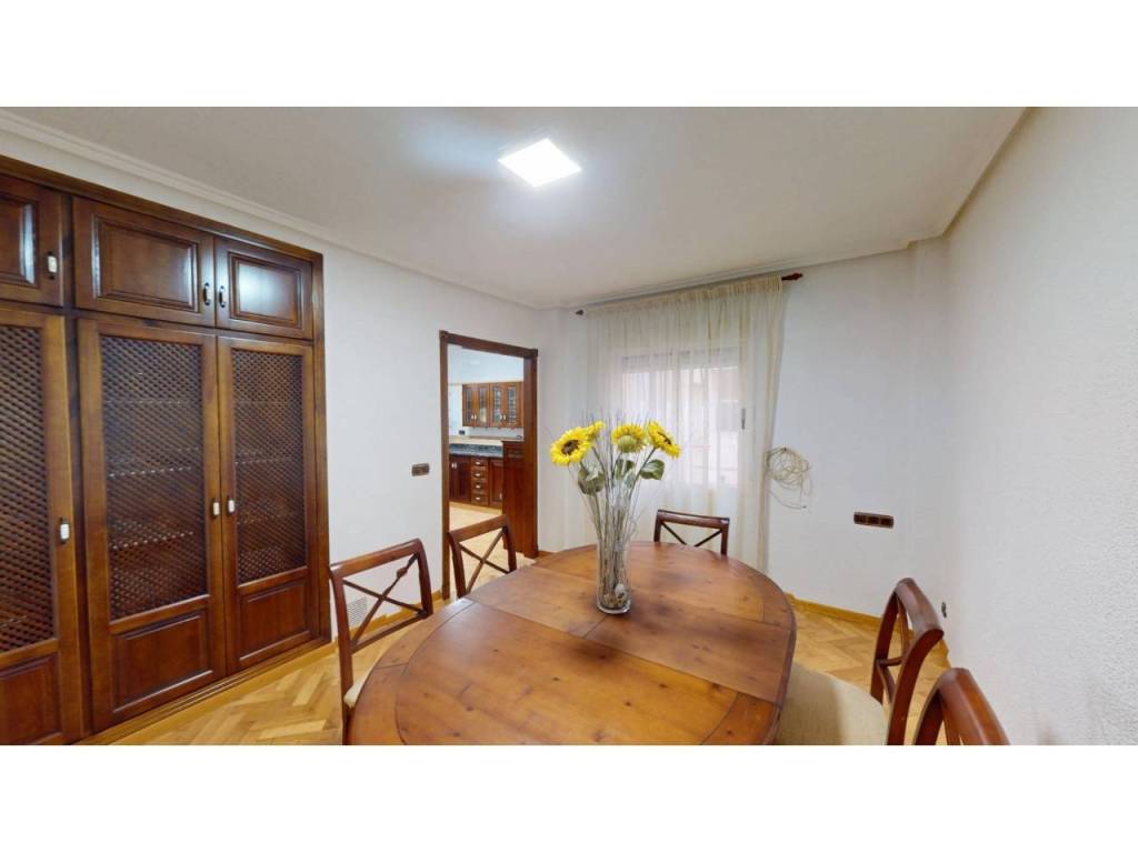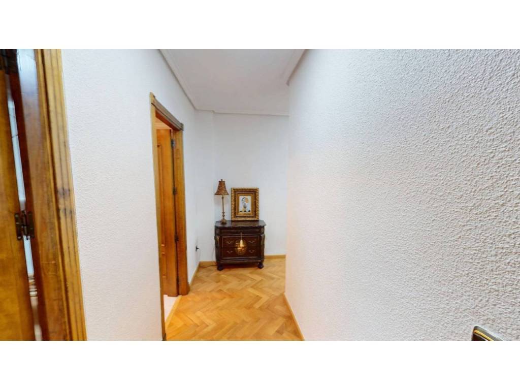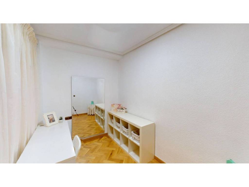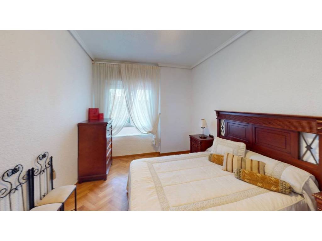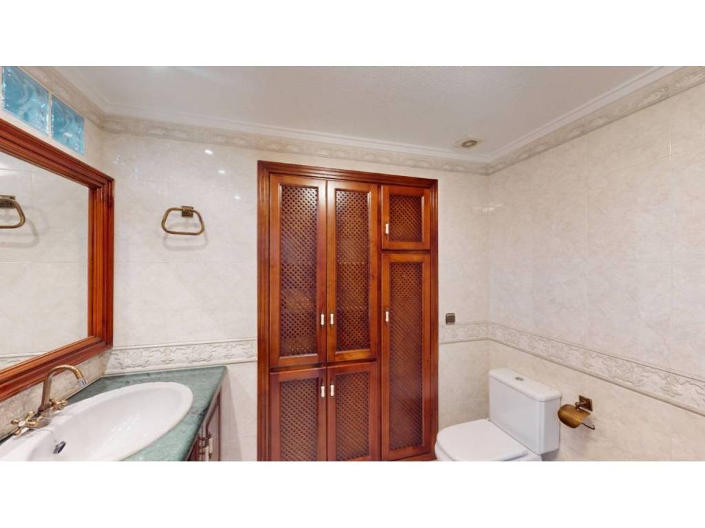 El piso cuenta con cuatro amplias habitaciones, todas ellas equipadas con armarios empotrados de madera maciza, completamente forrados en su interior, reforzando la sensación de calidad y durabilidad. Las puertas de paso, también en madera maciza tintada y con marcos macizos, aportan continuidad y presencia a la vivienda.