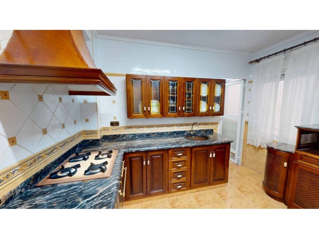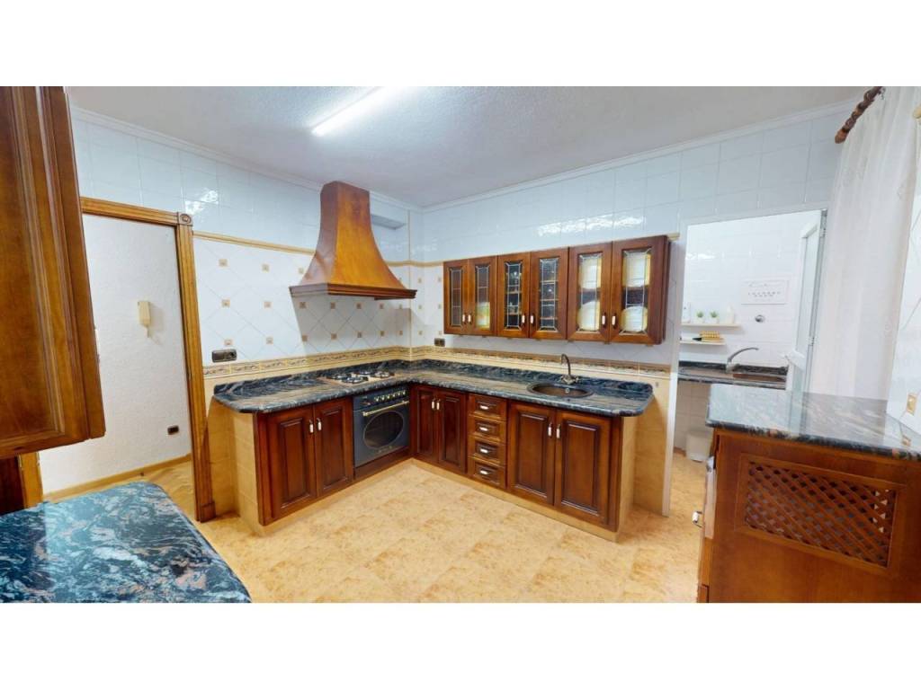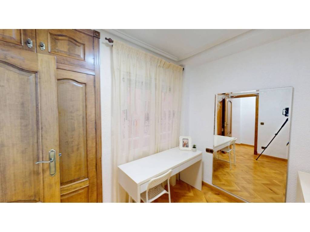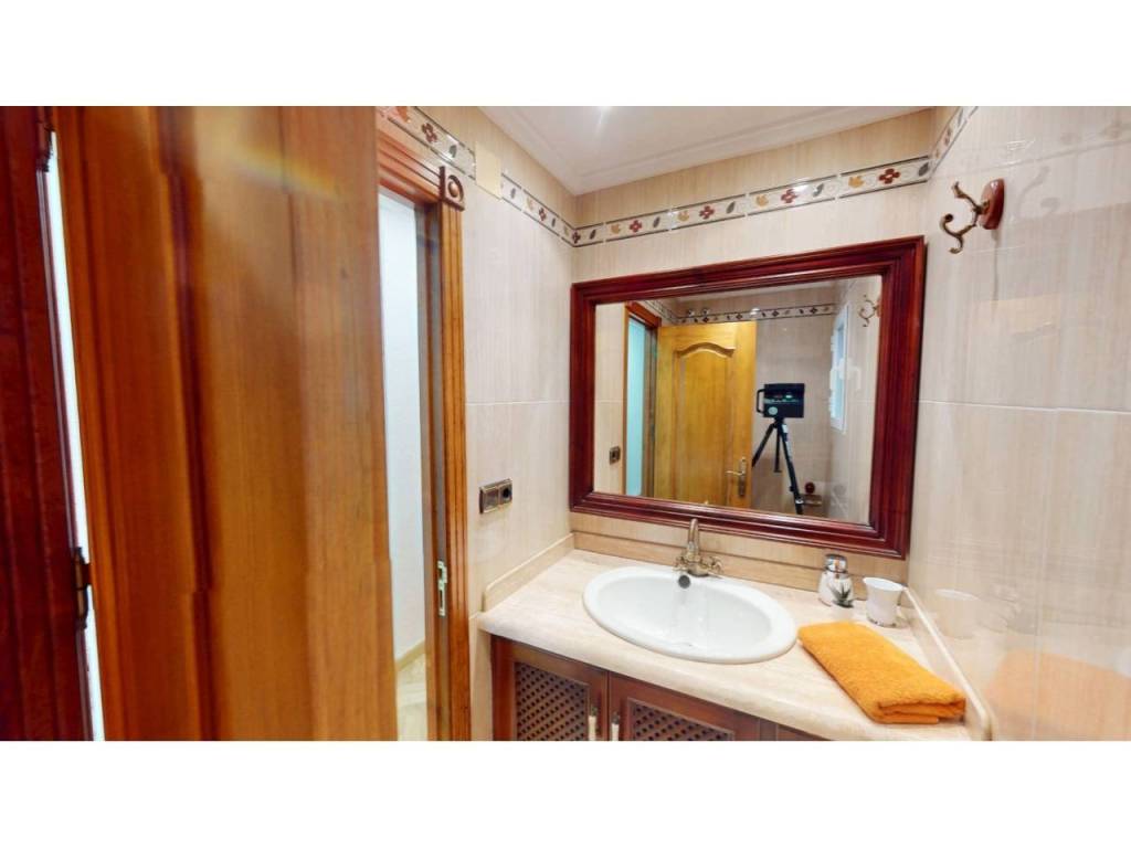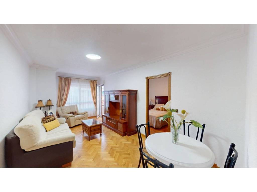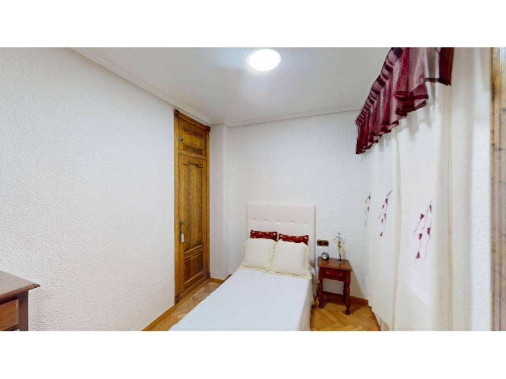 El piso cuenta con cuatro amplias habitaciones, todas ellas equipadas con armarios empotrados de madera maciza, completamente forrados en su interior, reforzando la sensación de calidad y durabilidad. Las puertas de paso, también en madera maciza tintada y con marcos macizos, aportan continuidad y presencia a la vivienda.