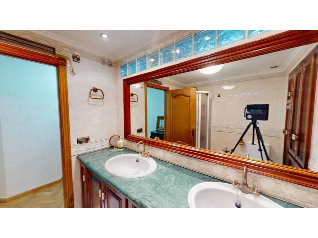 Desde la entrada, la vivienda sorprende con sus suelos de roble natural americano colocados en elegante patrón espiga, aportando calidez y distinción a cada estancia. Tanto la instalación eléctrica como la de fontanería han sido renovadas, incorporando mecanismos Niessen LED, lo que ofrece mayor eficiencia y un ambiente luminoso y moderno en todas las zonas.
