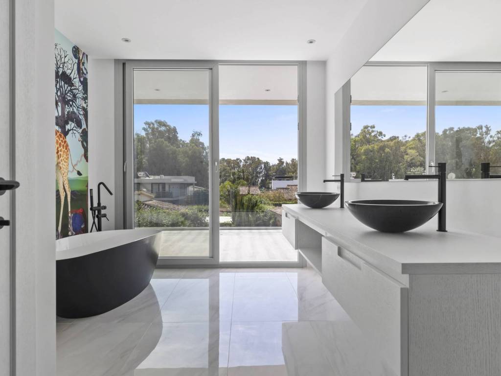 Villa de lujo de nueva construcción en venta en la zona de playa de San Pedro de Alcántara, Marbella, a solo unos pasos de la playa y el paseo marítimo.