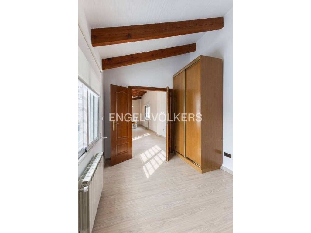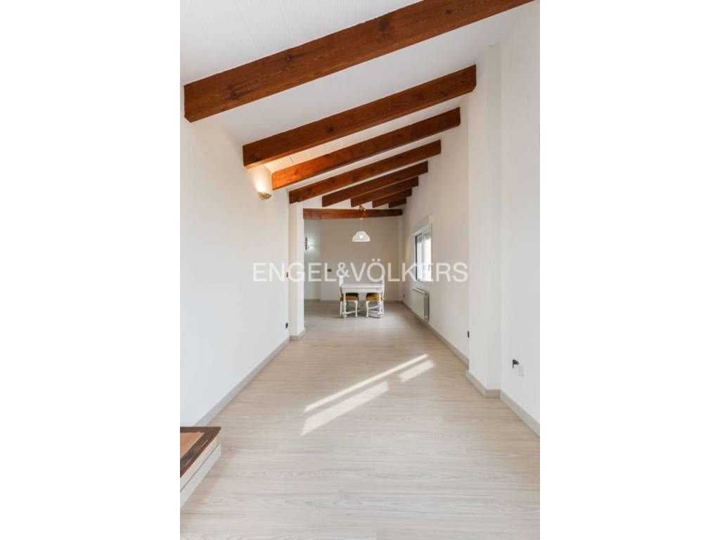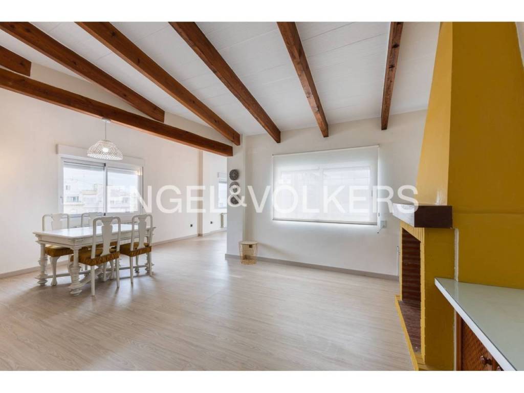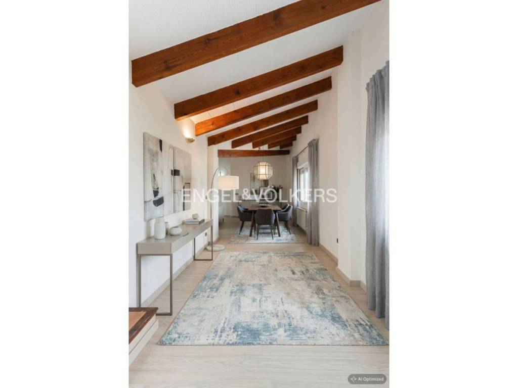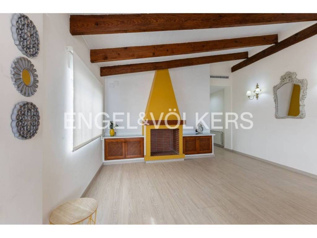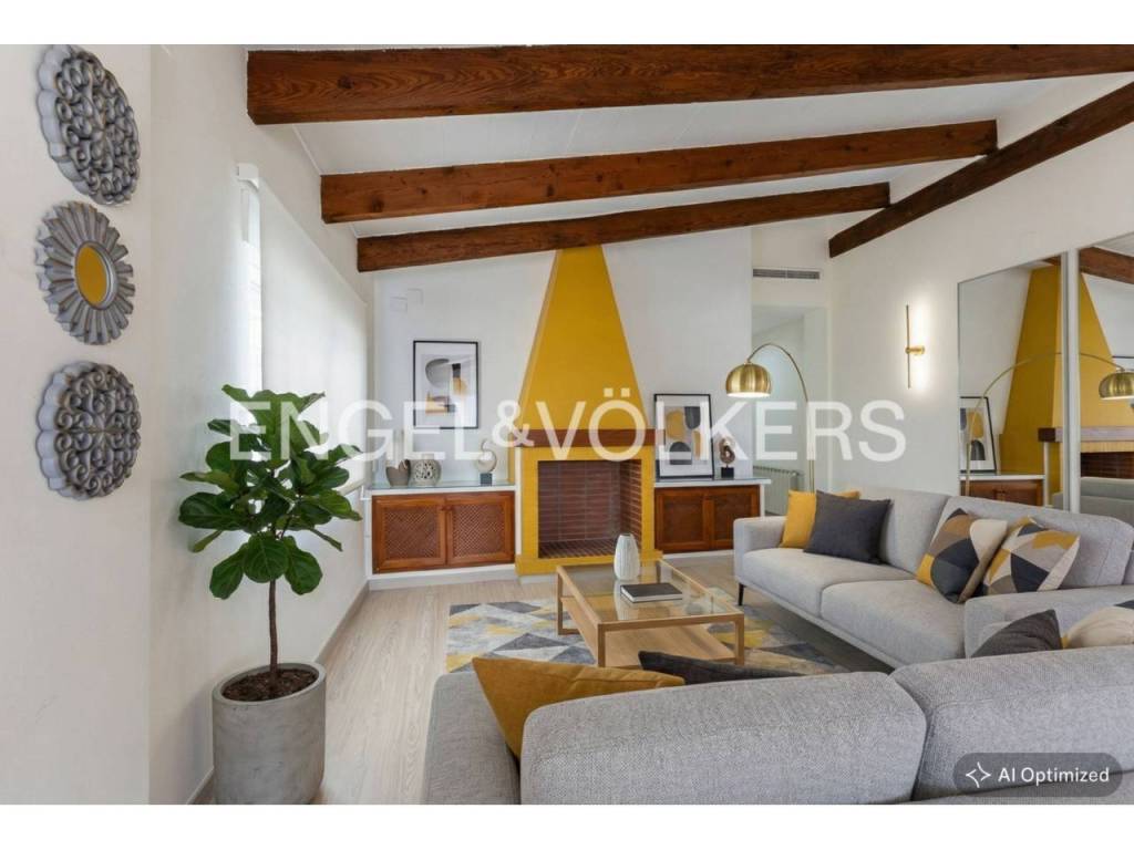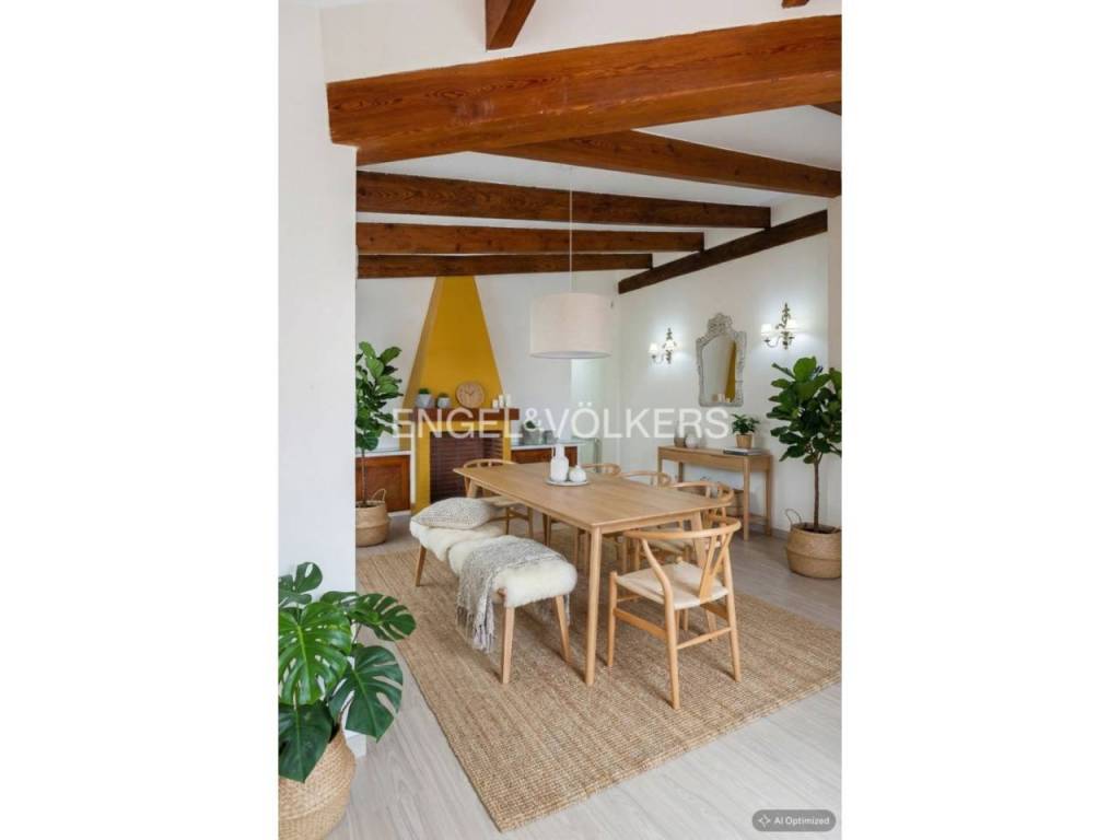 La propiedad destaca por su arquitectura singular, con techos altos y vigas de madera vistas que aportan personalidad y calidez a los espacios. El amplio salón-comedor, bañado por luz natural, se convierte en el auténtico corazón de la vivienda, presidido por una elegante chimenea que aporta un carácter único y acogedor.