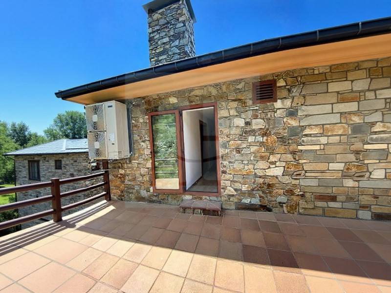Amplio salón-comedor con chimenea, ideal para disfrutar de las tardes de invierno, con salida directa a una gran terraza donde relajarse y contemplar el paisaje.