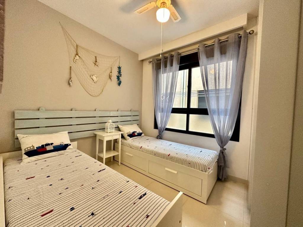 ¡ALQUILER DESDE OCTUBRE HASTA MAYO! Te presentamos un maravilloso bungalow en alquiler, ubicado en un lugar tranquilo y con una infraestructura bien desarrollada en Mil Palmeras - Torre de la Horadada. A pocos metros de la playa, esta vivienda ofrece una oportunidad única para disfrutar de una vida costera cómoda y relajada, y de nueva construcción! Características: Planta Baja con Jardín Propio: Disfruta de la comodidad de un bungaló de planta baja con un jardín propio, ideal para relajarse al aire libre.Amueblado y Cocina Equipada: La casa viene amueblada y la cocina está equipada con electrodomésticos modernos.Salón/Comedor y Cocina Americana: El diseño abierto del salón/comedor y la cocina americana proporciona un espacio amplio y luminoso.2 Dormitorios y 2 Baños: La vivienda dispone de dos dormitorios y dos baños, perfectos para una familia pequeña o una pareja.Ventanas de Doble Acristalamiento: Equipado con ventanas de doble acristalamiento de 2 cámaras, ofreciendo aislamiento térmico y acústico.Aire Acondicionado: Mantén una temperatura agradable durante todo el año con el sistema de aire acondicionado instalado.Armarios Empotrados: Maximiza el espacio de almacenamiento con armarios empotrados en los dormitorios.Área de 90m2: La casa tiene un área total de 90m2 más terraza y jardín, proporcionando un espacio amplio para vivir y disfrutar.Piscina Comunitaria: Disfruta de la piscina comunitaria de la residencia.Plaza de Garaje: Aparca tu vehículo con comodidad en la plaza de garaje incluida. Este bungalow en Mil Palmeras - Torre de la Horadada es la opción perfecta para quienes buscan un hogar moderno, bien equipado y cercano a la playa. ¡No pierdas la oportunidad de hacer de este bungalow tu nuevo hogar! Contáctanos ahora para más detalles y para programar una visita. Para más información, contáctanos al +34 604 45 24 78 o visita nuestra página web https://sunandsearealestate.com/ Referencia: RENT-576REPSP