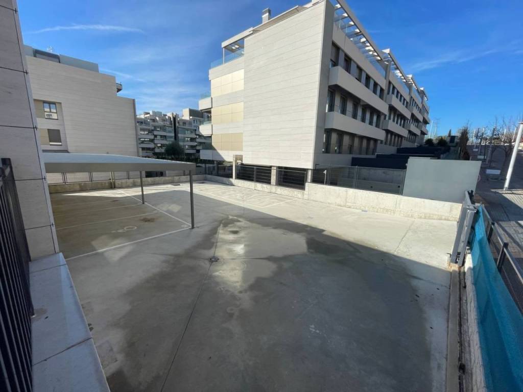 Planta principal a pie de calle con pocas columnas, zona de terraza exterior y espacio específico para 20 plazas de garaje privadas, de las cuales la mitad son cubiertas.