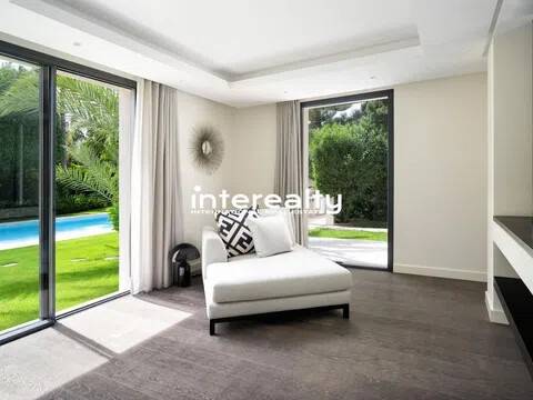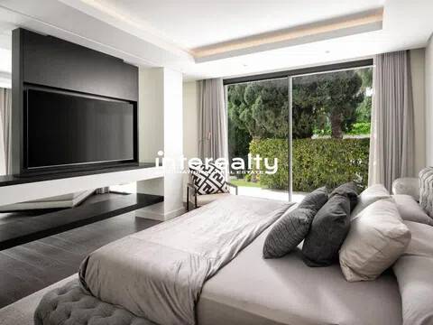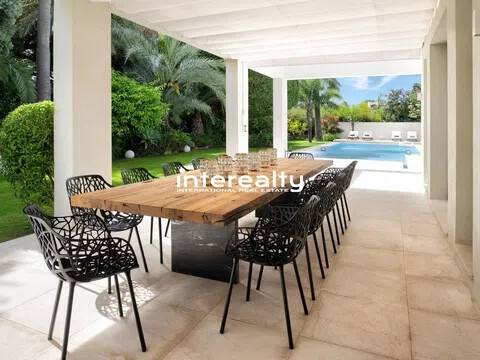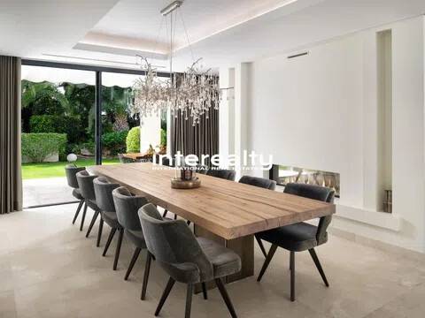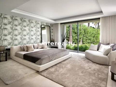 Esto es más que una casa: es un pedazo de paraíso. Situada en la parcela más grande de Marbesa con 2.500 m² de jardines tropicales, esta impresionante villa de una sola planta de 650 m² combina lujo, elegancia y calidez. Con cinco amplios dormitorios, cinco baños en suite y dos aseos adicionales, cada rincón de esta casa está diseñado para impresionar. Al entrar, lo recibe una amplia sala de estar de planta abierta llena de luz natural. Los elegantes muebles de diseño y los grandes ventanales complementan el ambiente cálido y sereno, convirtiéndolo en un espacio perfecto tanto para la relajación como para el entretenimiento. Con todo en un solo nivel, el flujo de esta casa es notable. El corazón de la casa, el espacio habitable, se abre al exterior, donde la belleza de la propiedad realmente cobra vida. Tanto la casa como la gran y acogedora área de la piscina están rodeadas de impresionantes jardines exóticos llenos de palmeras, árboles frutales y flores exquisitas, creando una energía pacífica que resuena en cada rincón, realmente difícil de encontrar en otro lugar. La propiedad incluye un gimnasio totalmente equipado con sauna y dos salas adaptables que se pueden convertir fácilmente en lo que desees, ubicadas cerca del garaje interior, que tiene espacio para dos coches. Además, hay espacio para dos coches adicionales en la zona de aparcamiento exterior. La propiedad también está equipada con paneles solares, lo que la hace energéticamente eficiente y económica. Imagínese despertarse con los suaves sonidos de la naturaleza, disfrutar de un tranquilo paseo matutino y saber que la playa está a menos de cinco minutos a pie. Este es un estilo de vida de lujo y serenidad en una de las zonas más cotizadas de Marbella Este. Se trata de una propiedad única, destinada al cliente que exige nada menos que extraordinario.