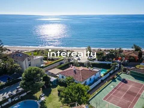 Gran villa de una sola planta literalmente en la playa en Playas Andaluzas en el este de Marbella. La casa ofrece un dormitorio principal con vestidor, oficina y baño, dos dormitorios más compartiendo baño, una moderna cocina abierta al comedor y sala de estar con acceso a la hermosa terraza y jardín con vistas al mar. Increíble piscina con baño exterior. Zona de aparcamiento para dos coches. En el nivel inferior hay un dormitorio utilizado actualmente como lavadero y un baño. Ubicación inmejorable con potencial aún para ampliar la casa con un nivel superior.
