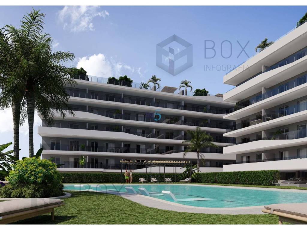 Ubicado en la encantadora localidad de Santa Pola, este residencial ofrece una selección de 80 propiedades, incluyendo apartamentos y áticos, diseñados para aquellos que buscan un hogar con vistas al mar. La proximidad al mar, a tan solo 1 km, permite disfrutar de la brisa marina y de paisajes costeros inigualables. Además, su cercanía al aeropuerto, a solo 15 km, facilita el acceso y la movilidad para residentes y visitantes. Las propiedades están equipadas con características modernas como armarios empotrados y suelos de cerámica, asegurando comodidad y estilo en cada rincón.