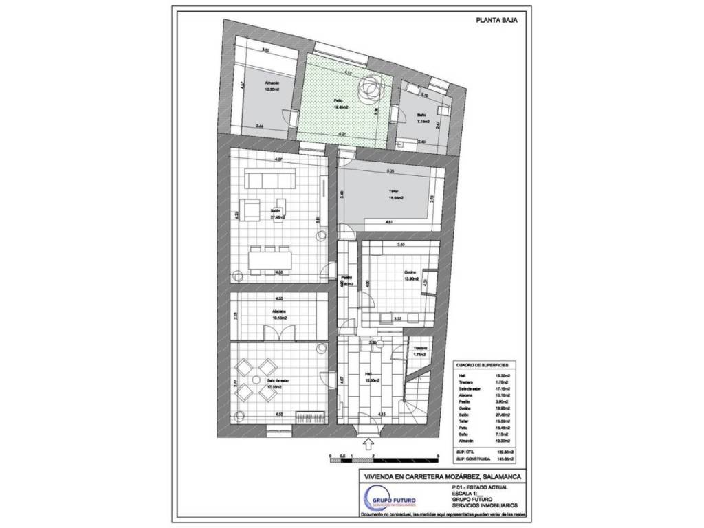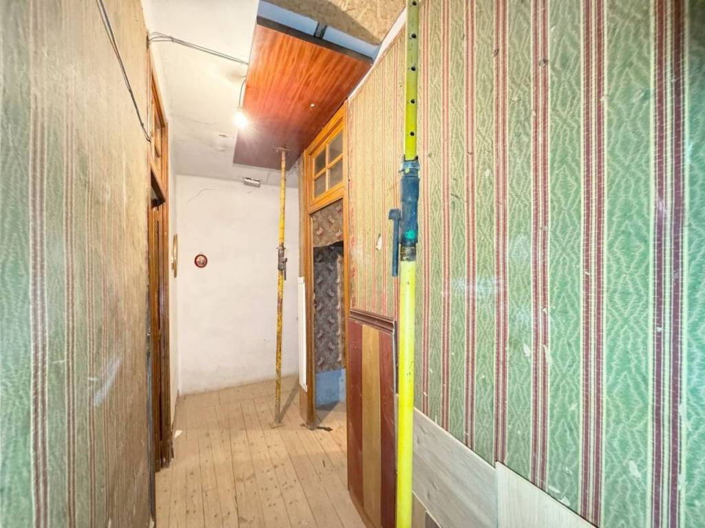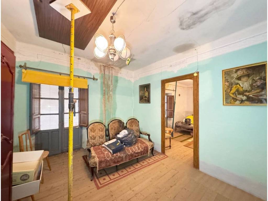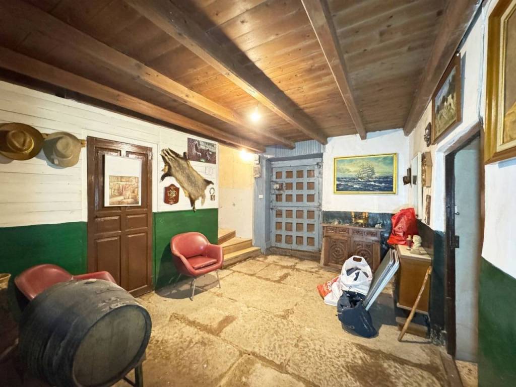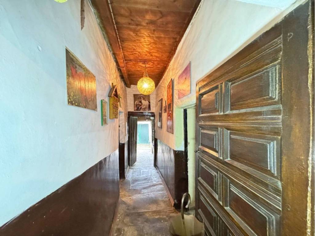 A la entrada encontramos un pequeño zaguán desde el que salen diferentes estancias de la casa. A la izquierda encontramos un amplio salón con ventana a la calle principal y donde hay ademas otra estancia que ha sido utilizada como bodega.