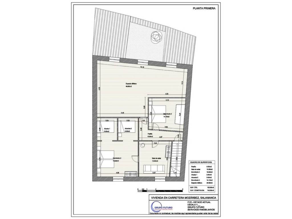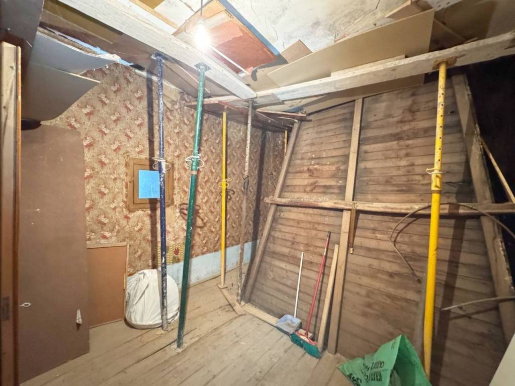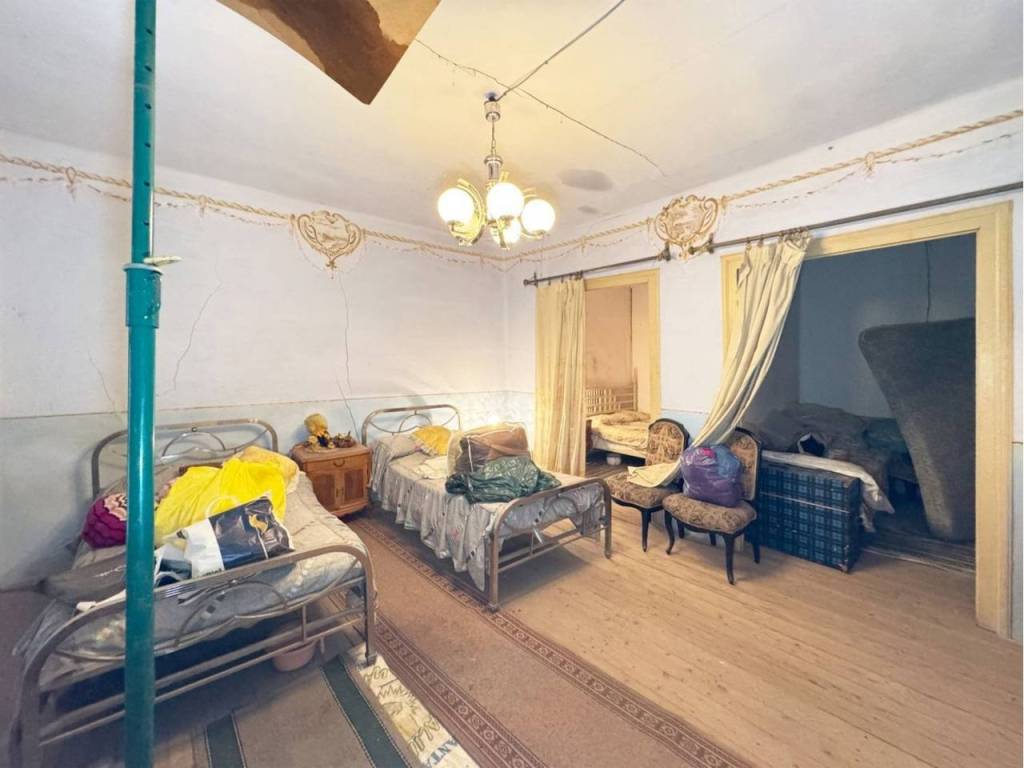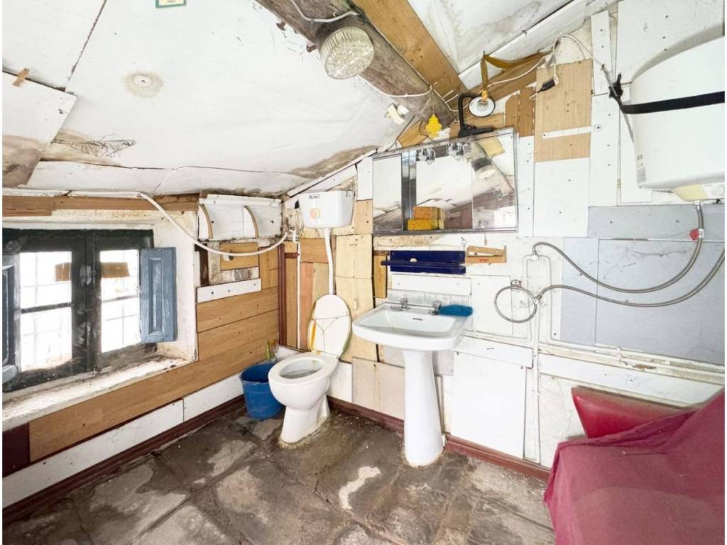 Volviendo al zaguán encontramos las escaleras de subida a la primera planta donde encontramos una habitación grande con antesala y dos alcobas y donde hay un balcón con vistas a la calle principal. Tambien hay una pequeña estancia donde tiene subida la chimenea y después un amplio espacio con 4 ventanas grandes donde después de reformarlo puede quedar un gran salón o varias habitaciones.