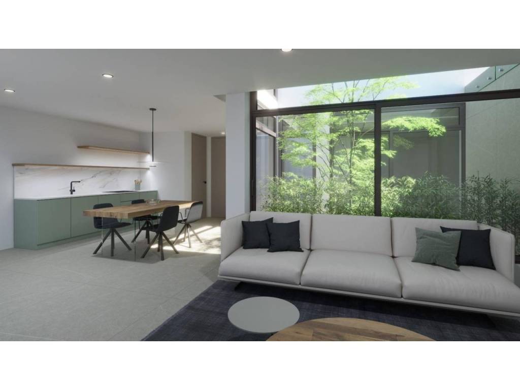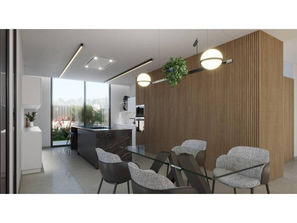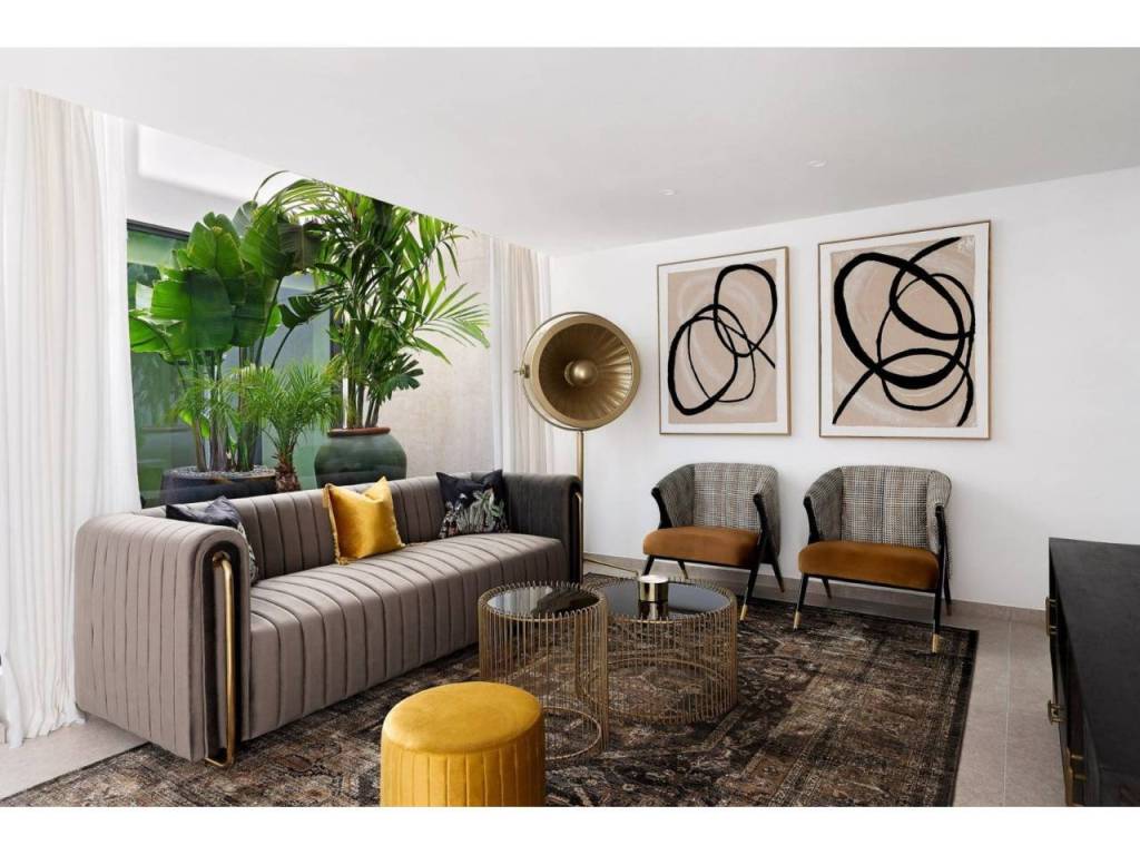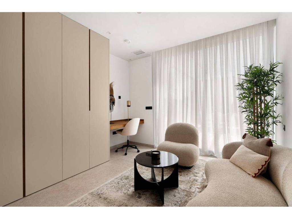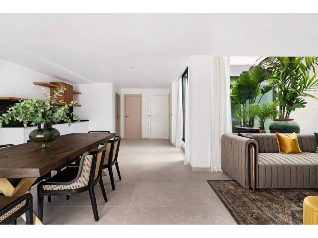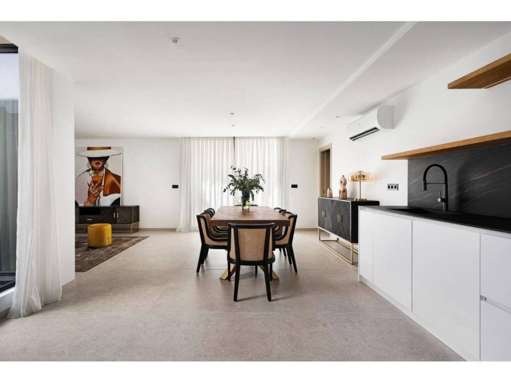 Estas villas están construidas en tres niveles: planta baja, planta superior y un semisótano con acceso independiente y un patio interior que proporciona luz natural y ventilación. Todas las viviendas cuentan con 4 o 5 dormitorios y 4 o 5 baños, un amplio salón-comedor diáfano, una cocina totalmente equipada con electrodomésticos Miele y una terraza cubierta con zona de barbacoa.