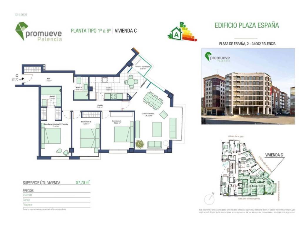 El edificio Plaza España, es un destacado ejemplo de la arquitectura moderna que combina funcionalidad y estética. Este edificio se sitúa en una de las plazas más emblemáticas de la ciudad , lo que confiere una importancia tanto cultural como social. El edificio lo van a formar 26 viviendas de 2 y 3 dormitorios, distribuidas en 6 alturas y 1 planta de ático con la posibilidad de garaje y trastero en 2 plantas de sótano.