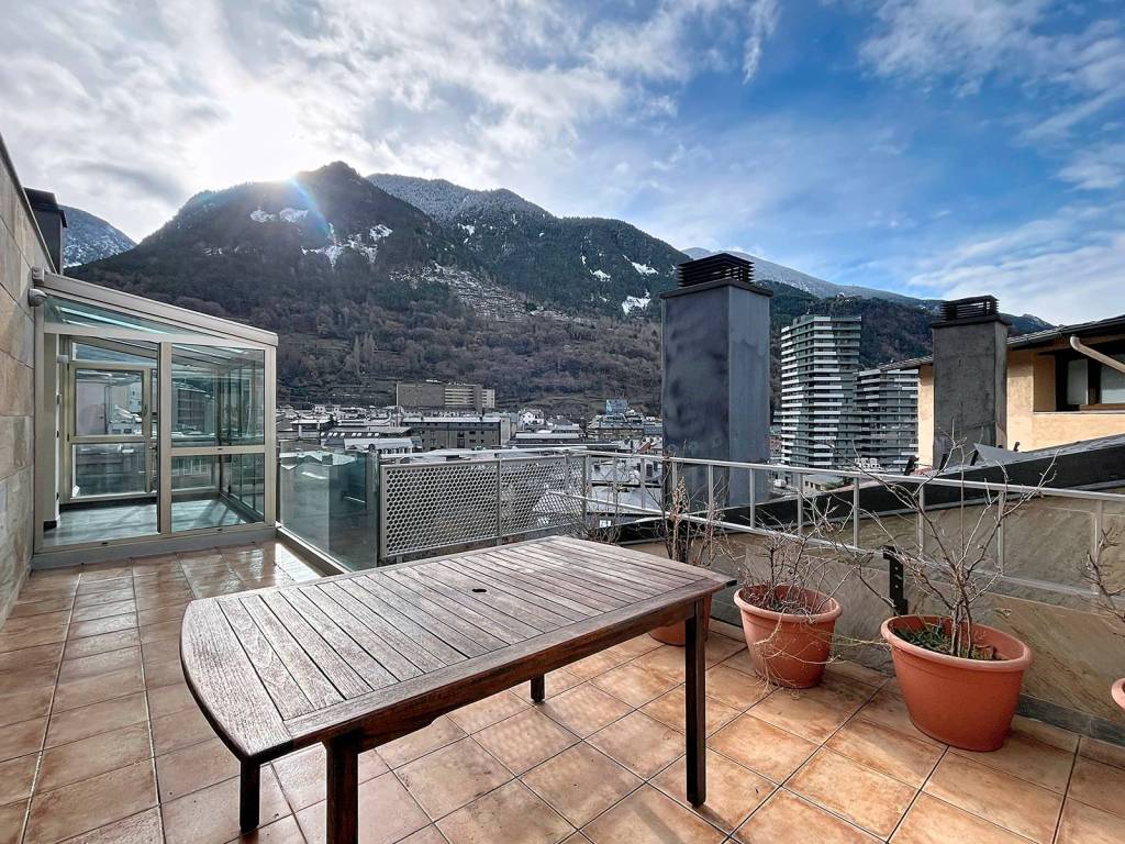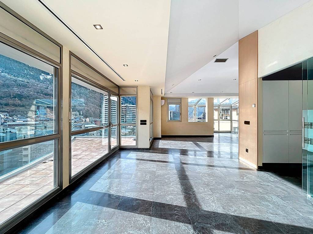 Exklusive Doppelhaushälfte zum Kauf in der Gemeinde Sant Julià de Lòria. Das Hotel liegt in einer ruhigen Wohngegend mit spektakulärem Blick auf die südlichen Täler des Fürstentums, aber nur 5 Minuten vom Stadtzentrum der Gemeinde mit allen notwendigen Dienstleistungen und Geschäften entfernt. Es ist ein 243,10m großes Grundstück, das in vier Etagen unterteilt ist. Das Erdgeschoss, von dem aus das Anwesen betreten wird, ist in eine unabhängige Küche, eine Toilette und ein doppelt hohes Wohn- und Esszimmer mit Kamin und Ausgang zur 60 m großen Gartenterrasse unterteilt. Im ersten Stock befindet sich der Ruhebereich, der zwei individuelle Schlafzimmer, ein unabhängiges Badezimmer mit Dusche und ein Zimmer im Suite-Stil mit Ankleideraum, ein komplettes Badezimmer mit Whirlpool und Balkon umfasst. In der obersten Etage befindet sich ein großer offener Raum mit mehreren Möglichkeiten sowie ein Büro und eine Bibliothek. Das Untergeschoss besteht aus einer Garage mit Platz für drei Fahrzeuge und zwei Motorräder, einem Keller für 430 Flaschen, einem Waschraum und dem Technikraum. Der Boden ist aus Steinzeug und die Oberflächen sind von hoher Qualität, wie die Vorinstallation für einen Aufzug. Aufgrund seiner Lage erhält es den ganzen Tag über Sonne. All dies macht die Immobilie zu einer hervorragenden Investition im hohen Ansehen des Fürstentums.