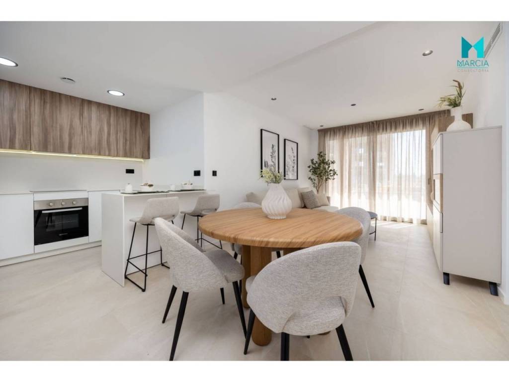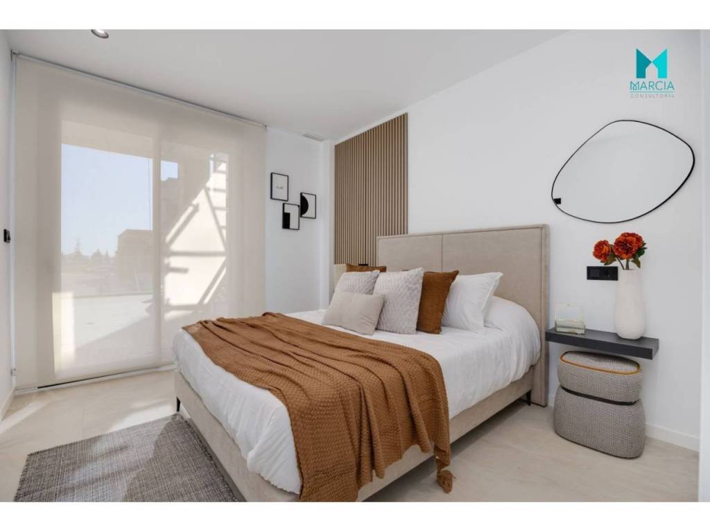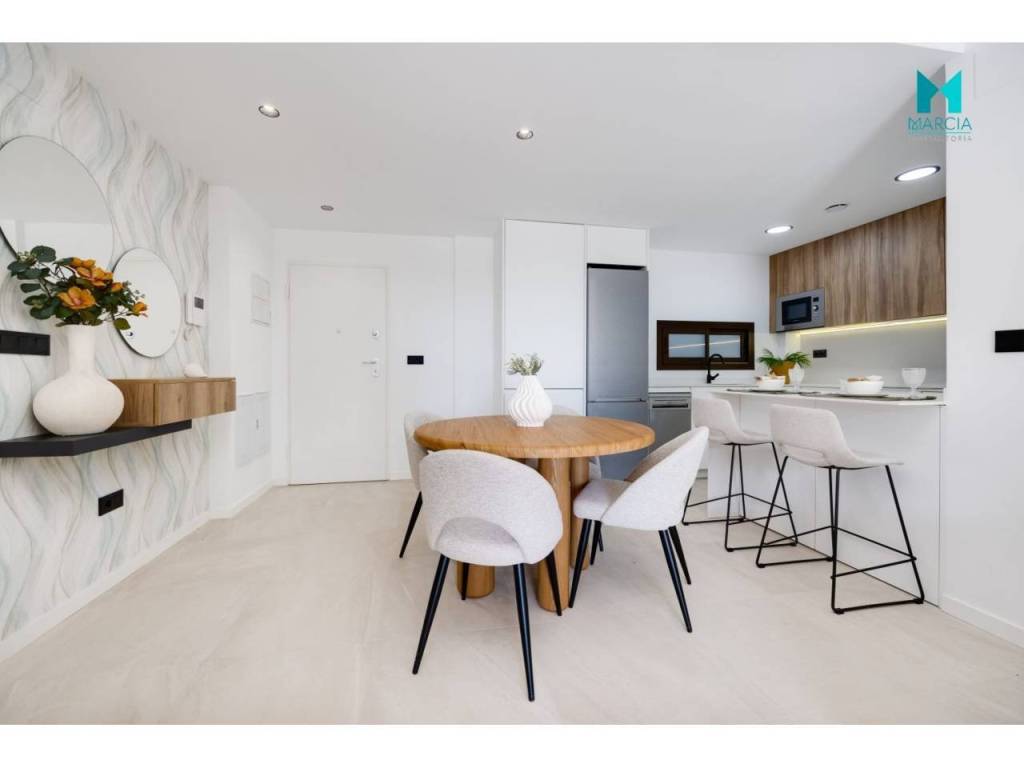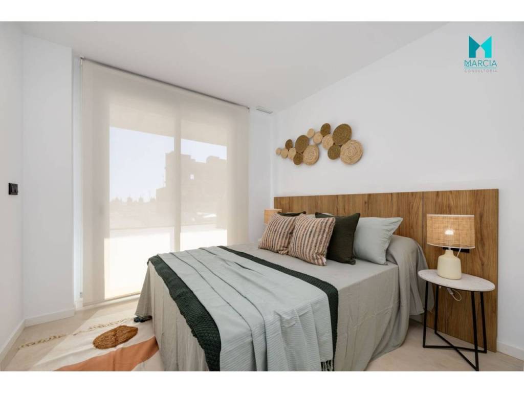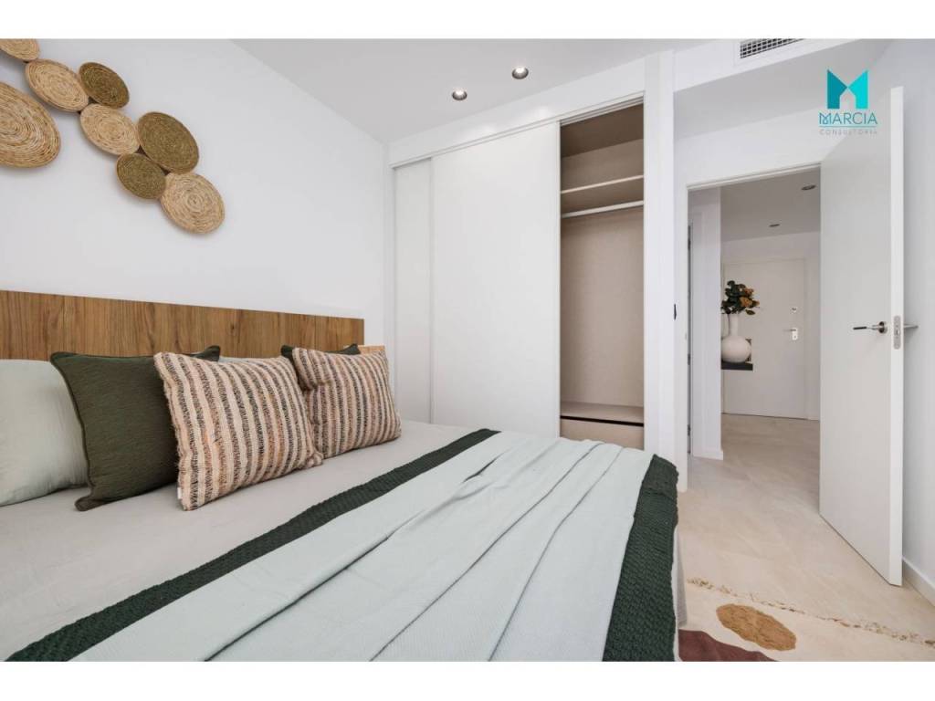 OBRA NUEVA. Excelente vivienda ATICO con altas calidades. Dispone de una superficie de 110 m2 constr. Consta de tres dormitorios, salón comedor, cocina amueblada y equipada, dos baños (uno en suite). 2º Planta. Adicionalmente, cuenta con plaza de garaje en parking subterráneo, gran terraza privada con una superficie de 26,40 m2 magnifico SOLARIUM con una superficie de 67,80 m2. Urbanización privada con magnificas zonas comunes, áreas de descanso y diferentes servicios tal como accesos minusválidos, pistas de paddel, piscina y zonas verdes. Orientación Este.