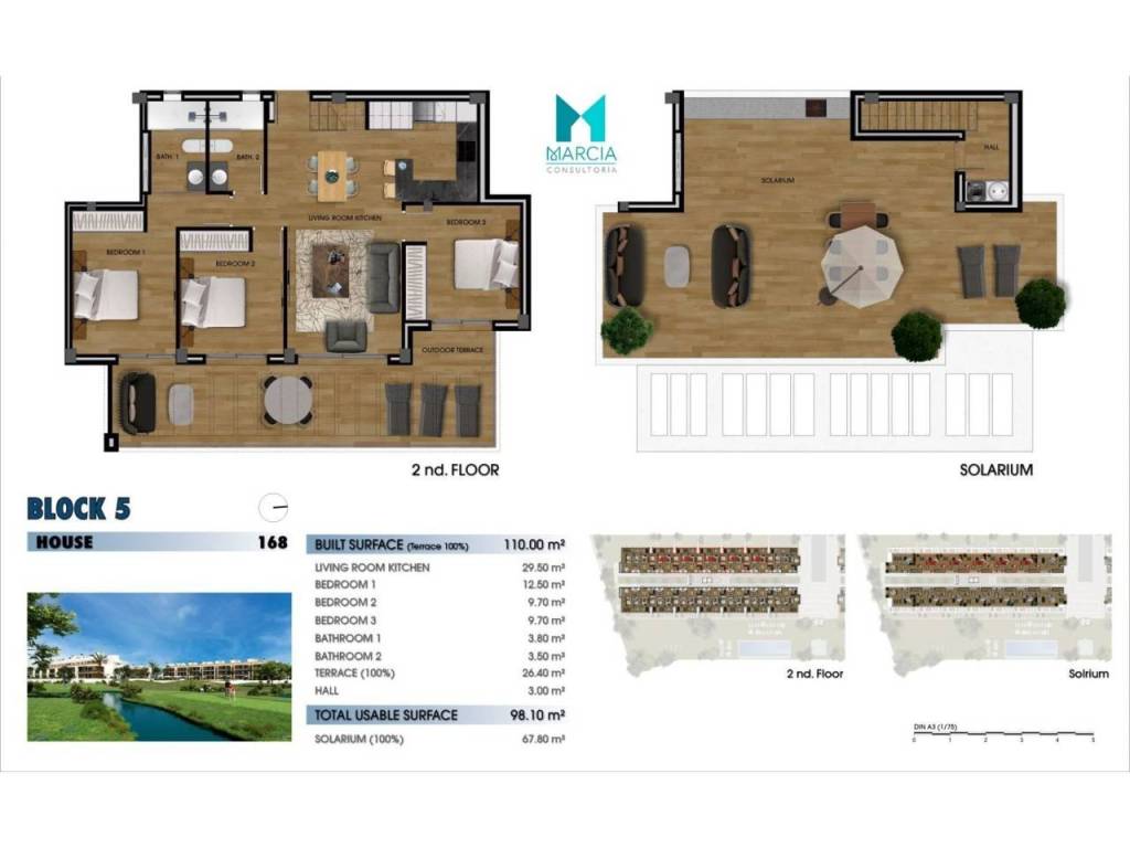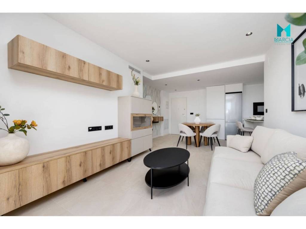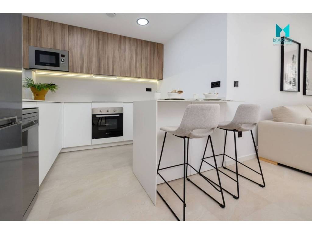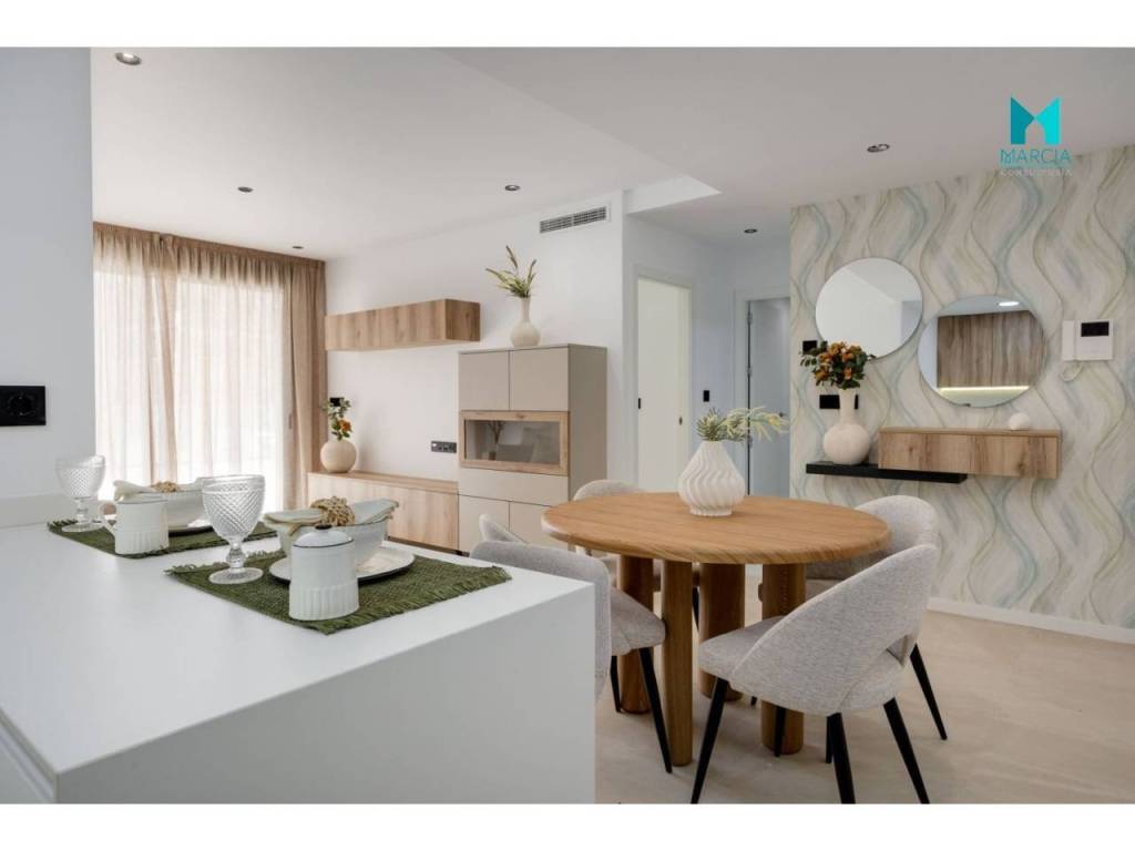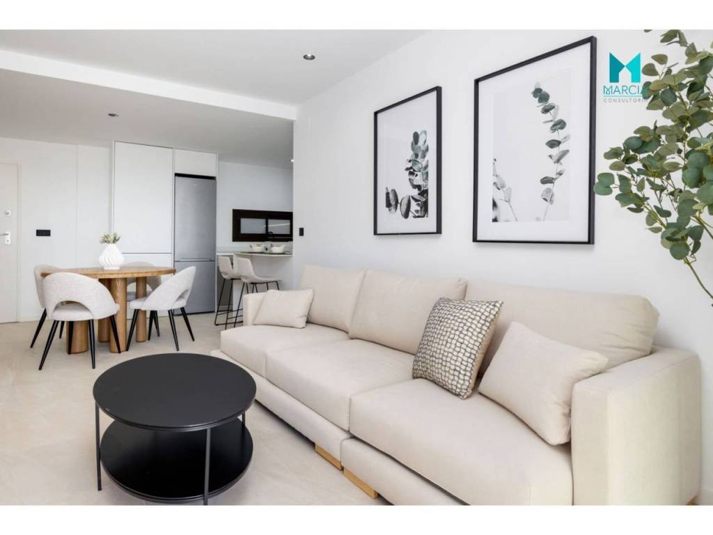 OBRA NUEVA. Excelente vivienda ATICO con altas calidades. Dispone de una superficie de 110 m2 constr. Consta de tres dormitorios, salón comedor, cocina amueblada y equipada, dos baños (uno en suite). 2º Planta. Adicionalmente, cuenta con plaza de garaje en parking subterráneo, gran terraza privada con una superficie de 26,40 m2 magnifico SOLARIUM con una superficie de 67,80 m2. Urbanización privada con magnificas zonas comunes, áreas de descanso y diferentes servicios tal como accesos minusválidos, pistas de paddel, piscina y zonas verdes. Orientación Este.