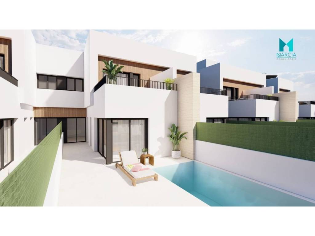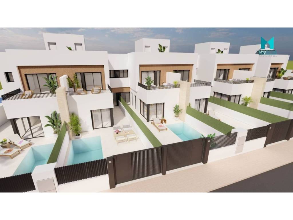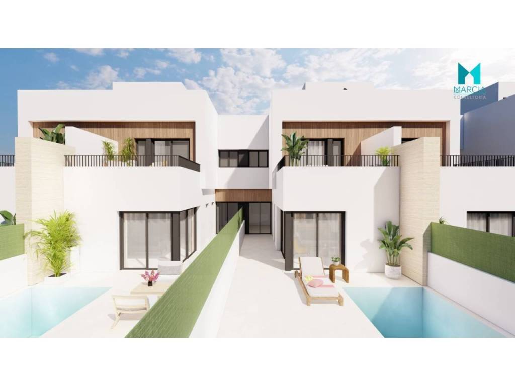 OBRA NUEVA. Excelente VILLA con altas calidades. Dispone de una superficie de 113,50 m2 constr. Consta de tres dormitorios, salón comedor, cocina amueblada y equipada, tres baños (uno en suite). Parcela de 127,20 m2, terraza de 17,85 m2, jardín de 49,80 m2, piscina de 15 m2 y SOLARIUM de 36,85 m2. Parking privado en superficie.