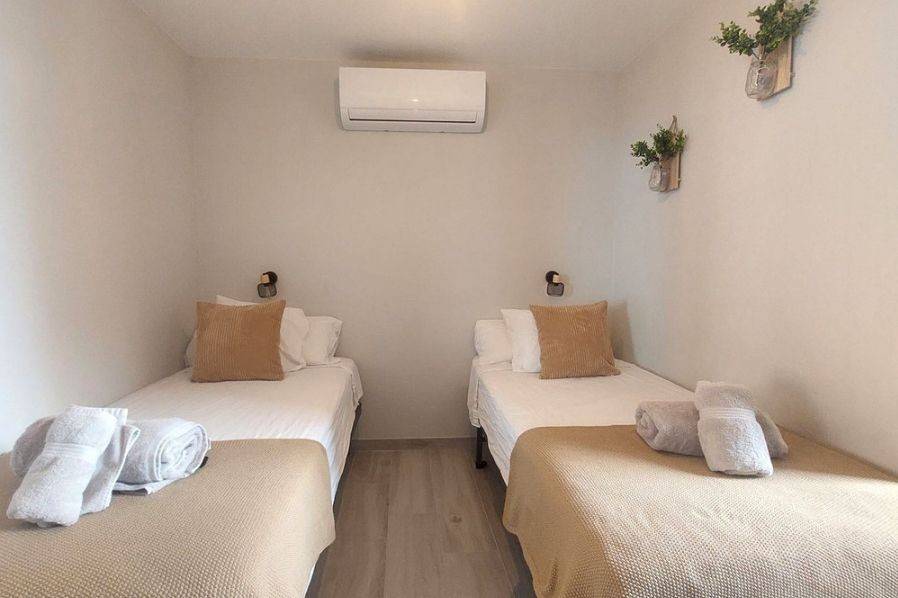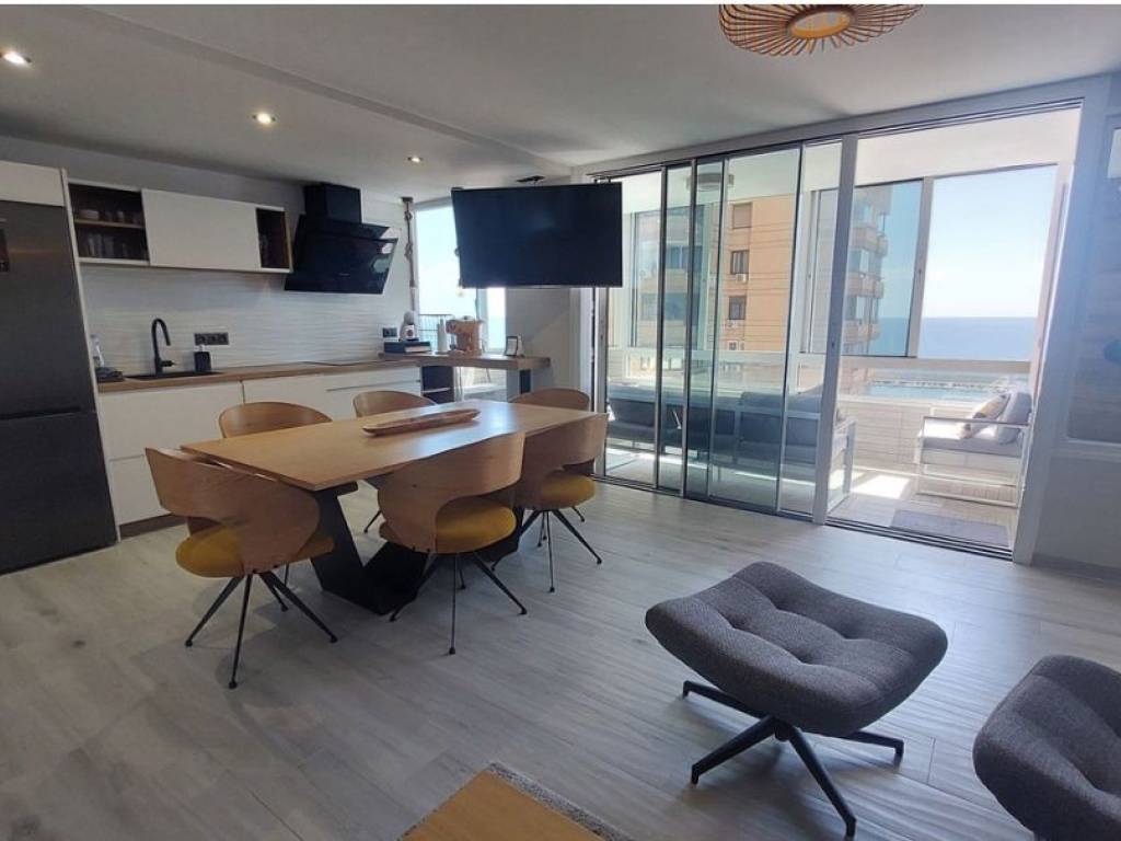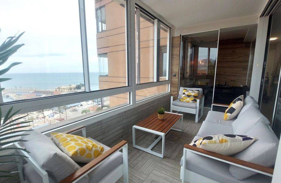 Fully reformed and modernised beachfront apartment for sale in Fuengirola on the Costa del Sol with lovely sea views. It has been completely renovated to a high standard with new bathrooms , new kitchen and new furniture . It has 2 bedrooms and 2 bathrooms, one en-suite, living room with terrace (with hydro-massage bath) and great views of the beach , the harbour and the Costa de Fuengirola. The complex has a pool and is close to all amenities and the centre. It also has added features such as A / C , double glazing, and excellent qualities . It is ideal for holidays because of its great location. Middle Floor Apartment, Fuengirola, Costa del Sol. 2 Bedrooms, 2 Bathrooms, Built 80 m², Terrace 8 m². Setting : Town, Commercial Area, Beachside, Port, Close To Port, Close To Shops, Close To Sea, Marina. Orientation : South. Condition : Excellent, Recently Renovated. Pool : Communal. Climate Control : Air Conditioning, Hot A/C. Views : Sea, Beach, Port, Pool. Features : Covered Terrace, Lift, Near Transport, Private Terrace, WiFi, Access for people with reduced mobility, Jacuzzi, Double Glazing. Furniture : Fully Furnished. Kitchen : Fully Fitted. Security : Gated Complex, Electric Blinds, Entry Phone. Parking : Street