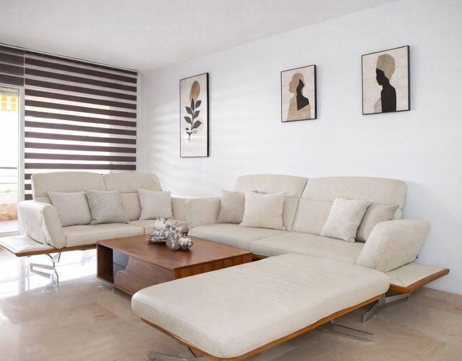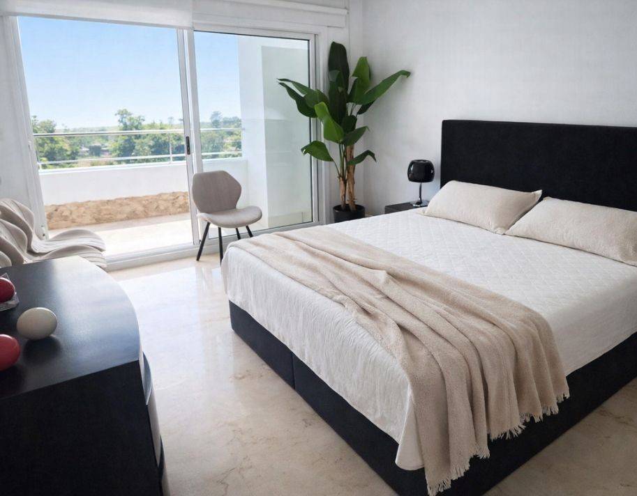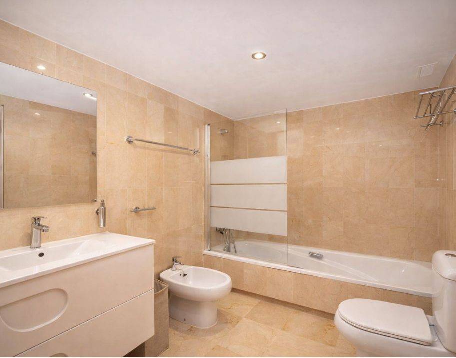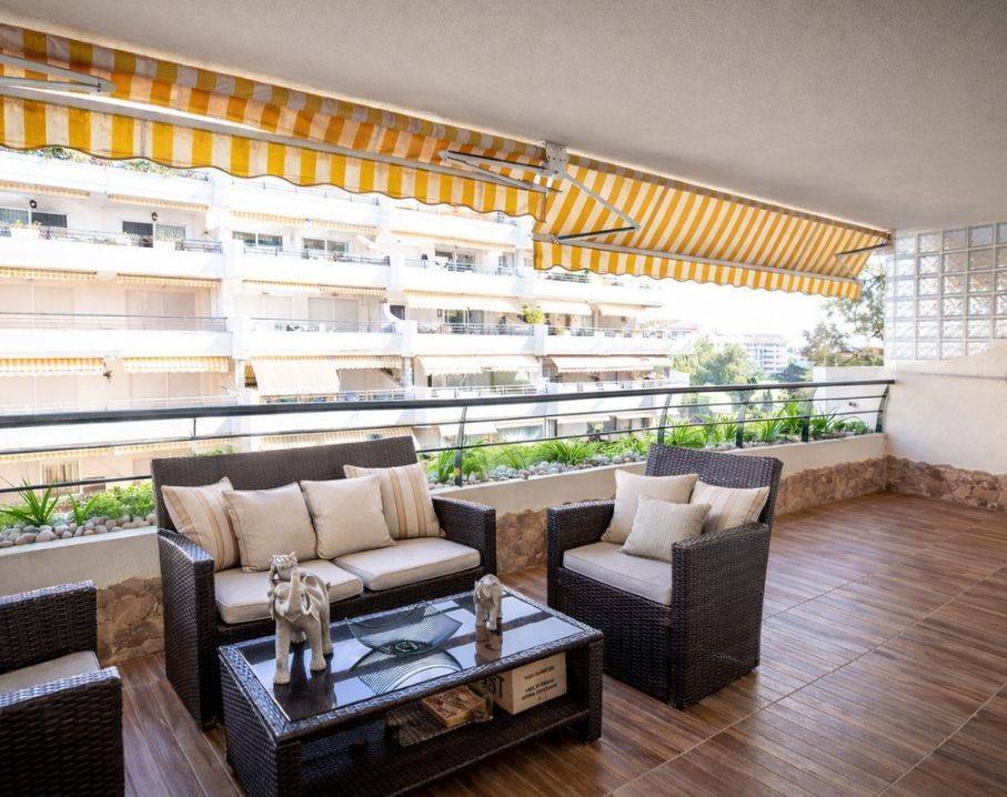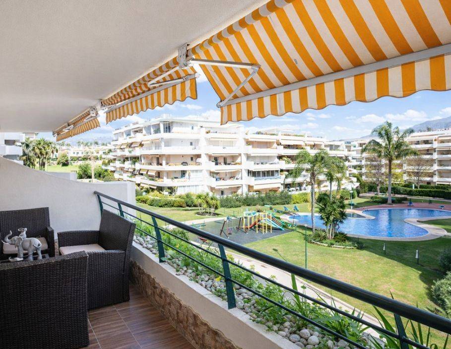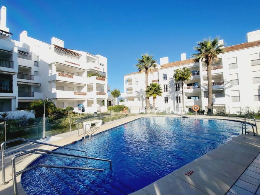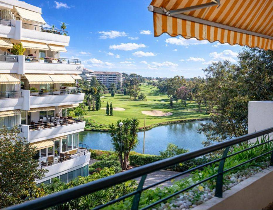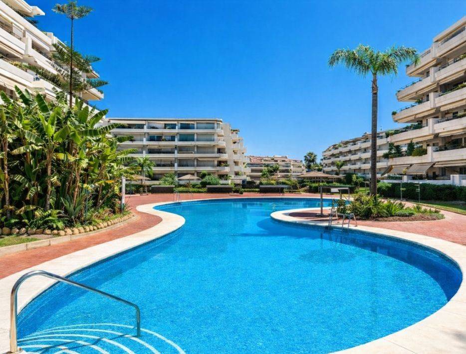 Situated within one of Guadalmina’s most prestigious gated communities, this refined frontline golf apartment offers an exceptional lifestyle surrounded by landscaped gardens, privacy and top-class communal facilities. An excellent option as a permanent residence, holiday home or high-quality investment on the Costa del Sol. The property features a spacious and light-filled living and dining area, designed to maximise comfort and natural light throughout the day. From here, large glass doors open onto a private terrace with open views over the gardens, swimming pool and the golf course, creating an ideal space for outdoor living and relaxation in every season. The apartment comprises two generously sized bedrooms, both fitted with built-in wardrobes. The master bedroom enjoys direct access to the terrace, enhancing the sense of space and connection with the surrounding greenery. There are two fully fitted bathrooms, finished in a contemporary and practical style. The independent kitchen is fully equipped with appliances in excellent condition, offering a functional and well-organised space suitable for everyday living or extended stays. Residents benefit from a secure and impeccably maintained residential complex, featuring 24-hour security, extensive landscaped gardens and an impressive selection of seven communal swimming pools. The apartment is fitted with central air conditioning and heating, providing year-round comfort. A private parking space is included in the price. This is a rare opportunity to acquire a frontline golf property in one of Marbella’s most established and desirable areas, just a short drive from San Pedro de Alcántara, the beaches and all essential services