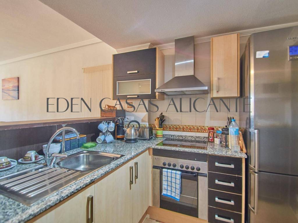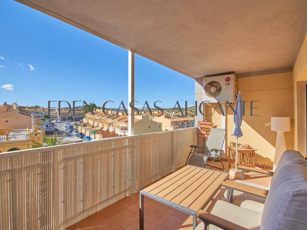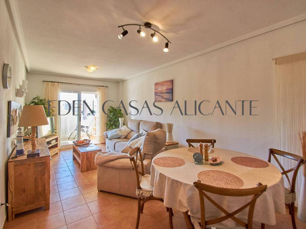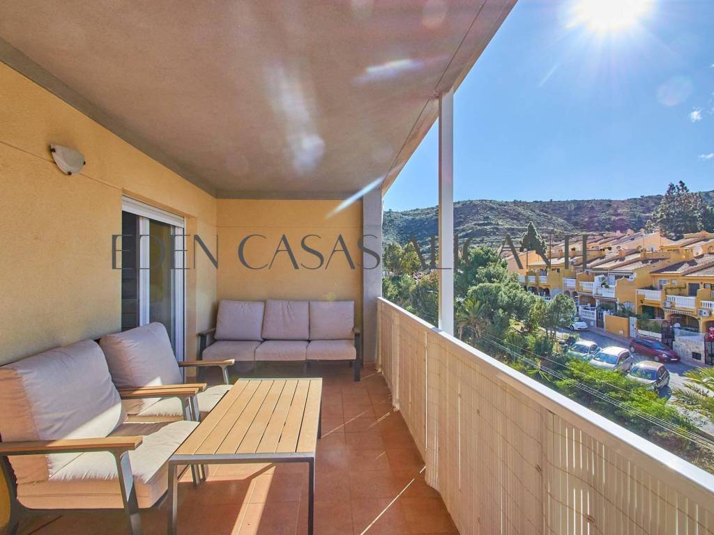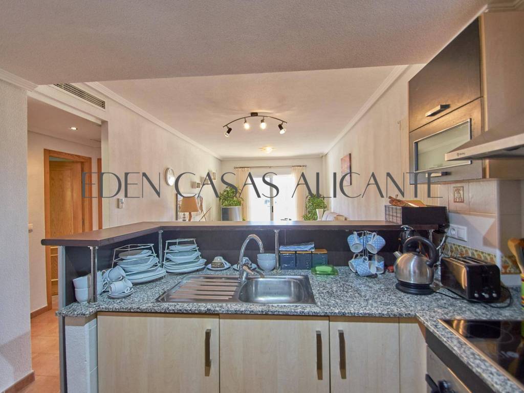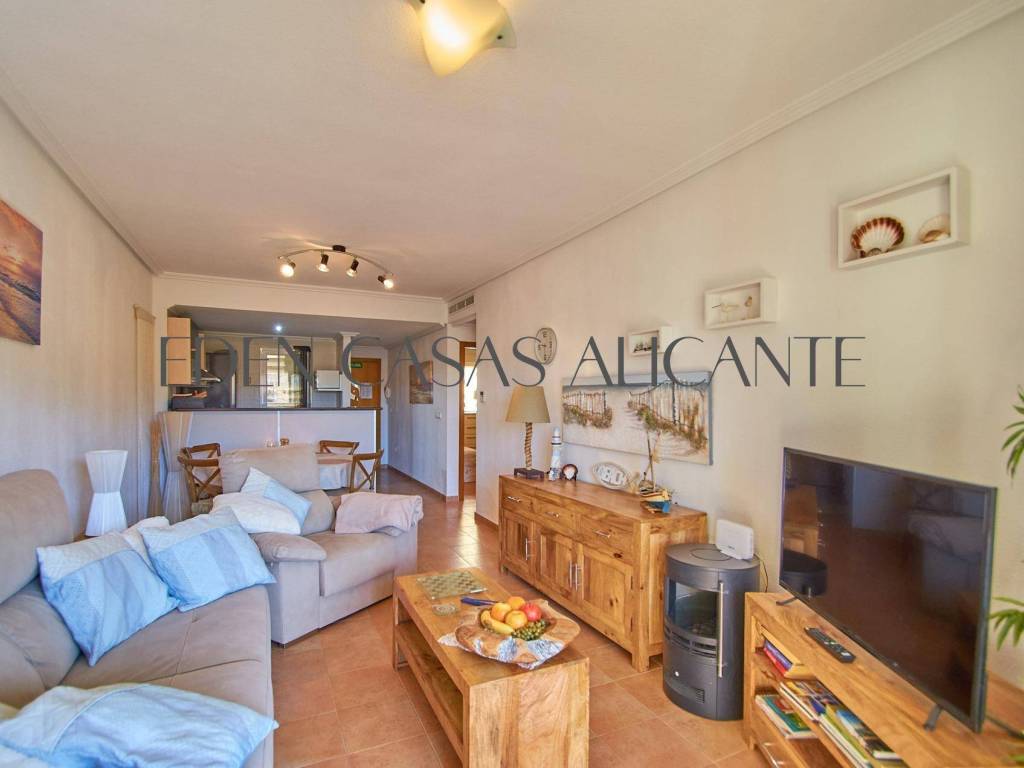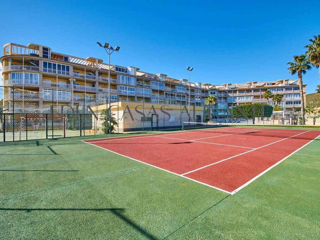 Diese stilvolle 74 m2 große Wohnung bietet ein warmes und lichtdurchflutetes Wohnambiente, das perfekt auf modernen Komfort und unkompliziertes Wohnen ausgelegt ist. Der gut durchdachte Grundriss umfasst einen großzügigen offenen Wohn- und Essbereich, der nahtlos in eine voll ausgestattete moderne amerikanische Küche übergeht und direkten Zugang zu einer praktischen Galerie bietet, die als Waschküche genutzt wird.Vom Wohnzimmer aus gelangt man auf eine großzügige private Terrasse, ein idealer Ort, um sich zu entspannen und den freien Blick nach Westen auf die Berge zu genießen, wo atemberaubende Sonnenuntergänge und eine ruhige Naturkulisse eine einladende Atmosphäre schaffen.Die Wohnung verfügt über zwei helle Doppelzimmer mit Einbauschränken, von denen eines direkten Zugang zur Terrasse hat, was den Indoor-Outdoor-Lifestyle noch verstärkt. Ein modernes, voll ausgestattetes Badezimmer verbindet Funktionalität mit Komfort, während eine Klimaanlage mit Warm- und Kaltluftzufuhr für eine ganzjährige Klimatisierung sorgt.Dank seiner Westausrichtung und der hervorragenden Querlüftung profitiert das Apartment von reichlich Tageslicht und einer frischen, luftigen Atmosphäre den ganzen Tag über.Zur Immobilie gehören außerdem eine zentrale Klimaanlage, ein nummerierter Außenparkplatz und ein 2,5 x 3 m großer Abstellraum, der wertvollen Stauraum für Ihre Strandutensilien oder Koffer bietet.Innerhalb einer gepflegten Wohnanlage können die Bewohner wunderschön angelegte Gärten und hervorragende Gemeinschaftseinrichtungen genießen, darunter einen Swimmingpool, einen Multisportplatz, einen Tennisplatz, einen voll ausgestatteten Fitnessraum und eine entspannende Sauna perfekt für einen aktiven Lebensstil und ruhige Momente der Entspannung.Dank seiner idealen Lage in der Nähe wichtiger Einrichtungen wie einer Apotheke, einem Mini-Supermarkt, einem zentralen Spa und einer Vielzahl von Restaurants bietet dieses Apartment sowohl Komfort als auch Bequemlichkeit.Ob als Dauerwohnsitz, Urlaubsdomizil oder kluge Investition diese Immobilie ist eine wunderbare Gelegenheit, die Sie sich nicht entgehen lassen sollten.