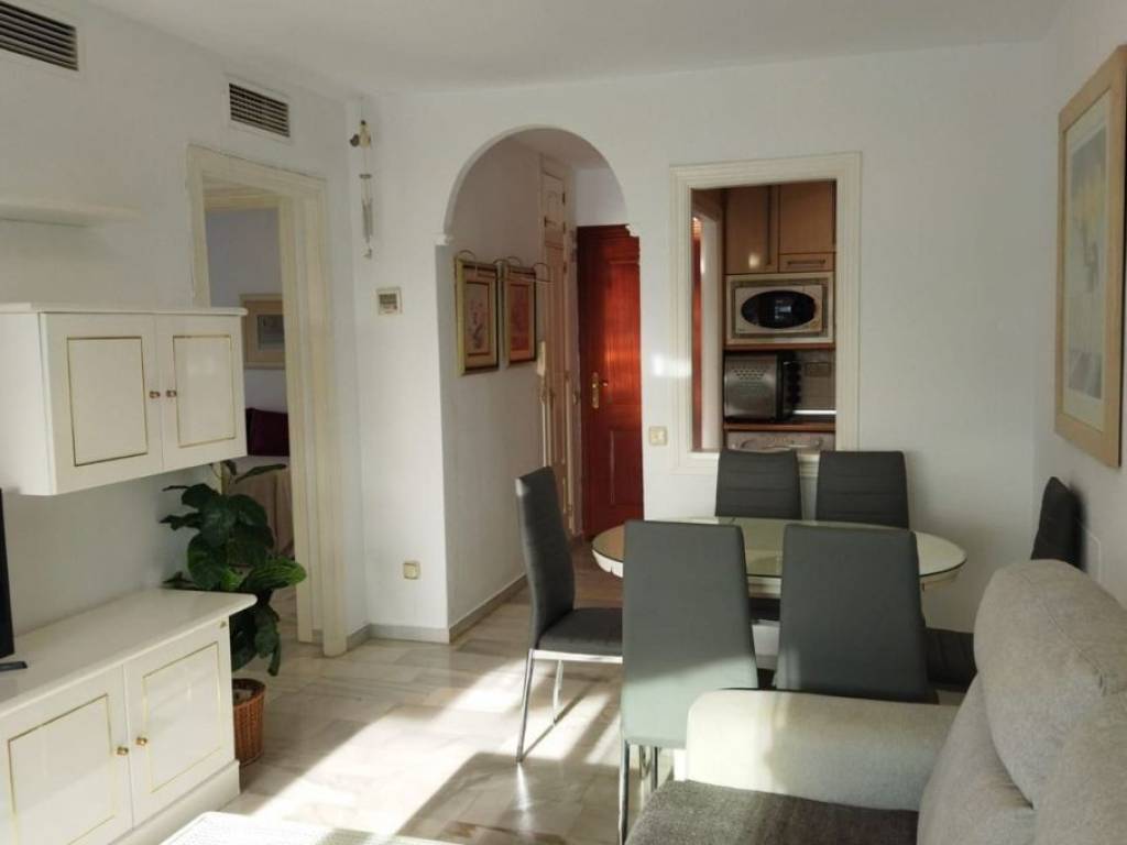 LA FONTANILLA!!!! APARTMENT WITH GARAGE, STORAGE ROOM, AND POOL!!! The best neighborhood located in the heart of Marbella. The apartment is on the sixth floor, facing southwest, which provides excellent natural light and includes hot/cold air conditioning. It comprises two bedrooms and a full bathroom with a shower and a window between the bedrooms, a living room with a separate, fully equipped kitchen, and a glazed terrace with glass curtains, allowing you to enjoy it year-round. It offers open and unobstructed views and has a concierge service