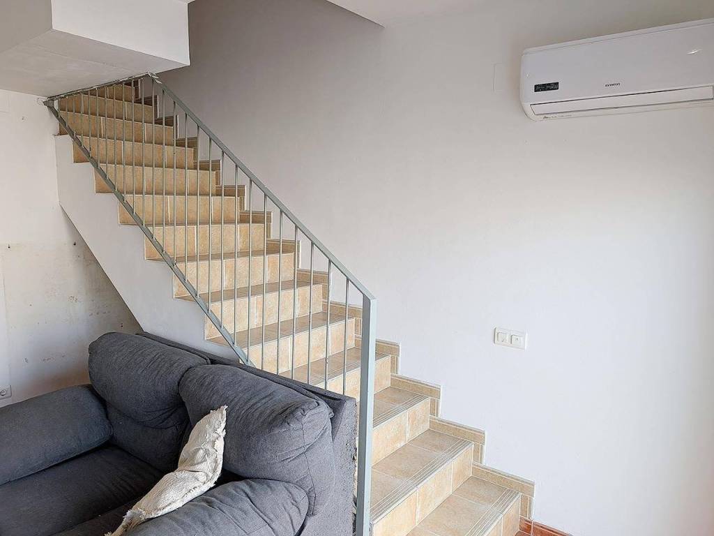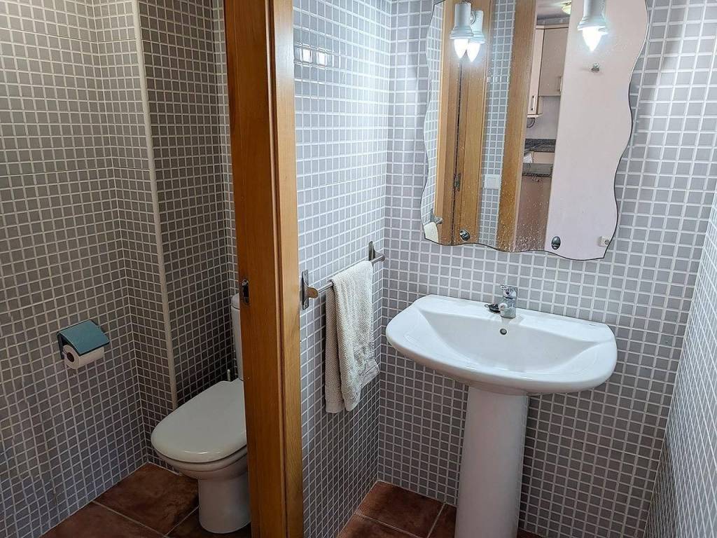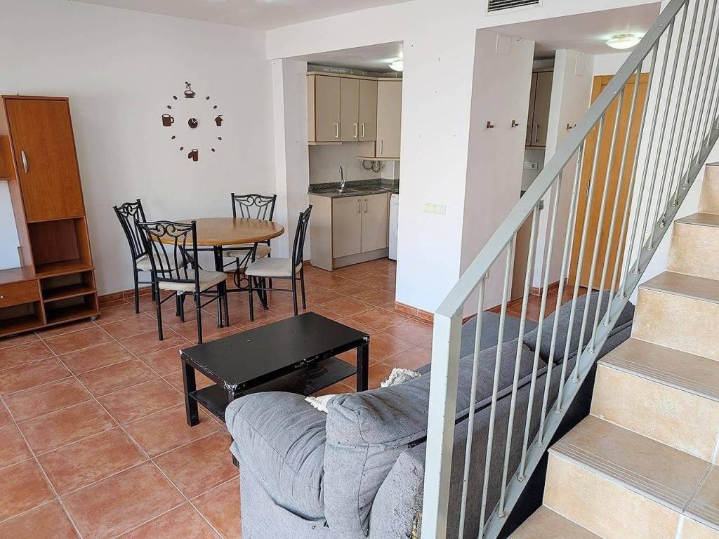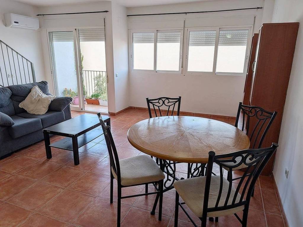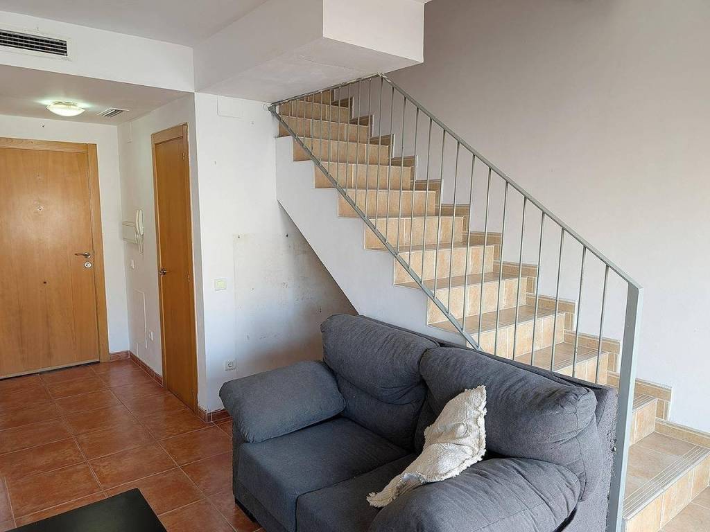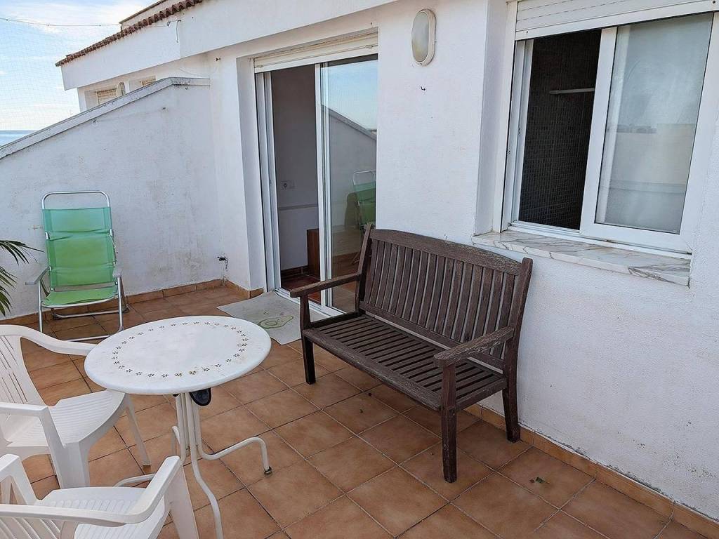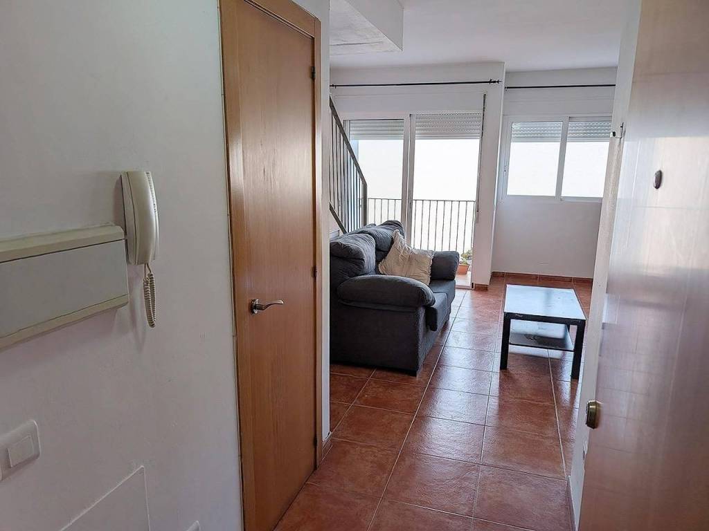 The property is distributed over two floors. On the lower floor, corresponding to the second floor, there is a spacious living-dining room with access to a balcony overlooking the communal pool, next to an open-plan fitted kitchen separated by a breakfast bar. This floor also includes a guest toilet. On the upper floor, the third floor of the building, is the master bedroom, which has access to a generously sized terrace with sea views, as well as a full bathroom.
