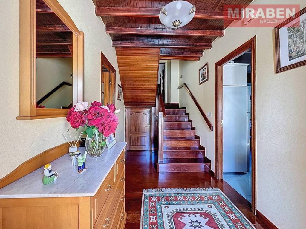 Esta propiedad de 130m2 de superficie, dispone de 4 habitaciones (3 dobles y 1 sencilla), 2 baños, cocina independiente y totalmente equipada con chimenea de leña incluida, salón, bodega, un pequeño gimnasio, un desván y un patio trasero muy acogedor con acceso directo al garaje (capacidad para tres vehículos). En el propio patio contamos además con una pequeña zona de barbacoa y despensa, además de un gran hórreo en perfecto estado.