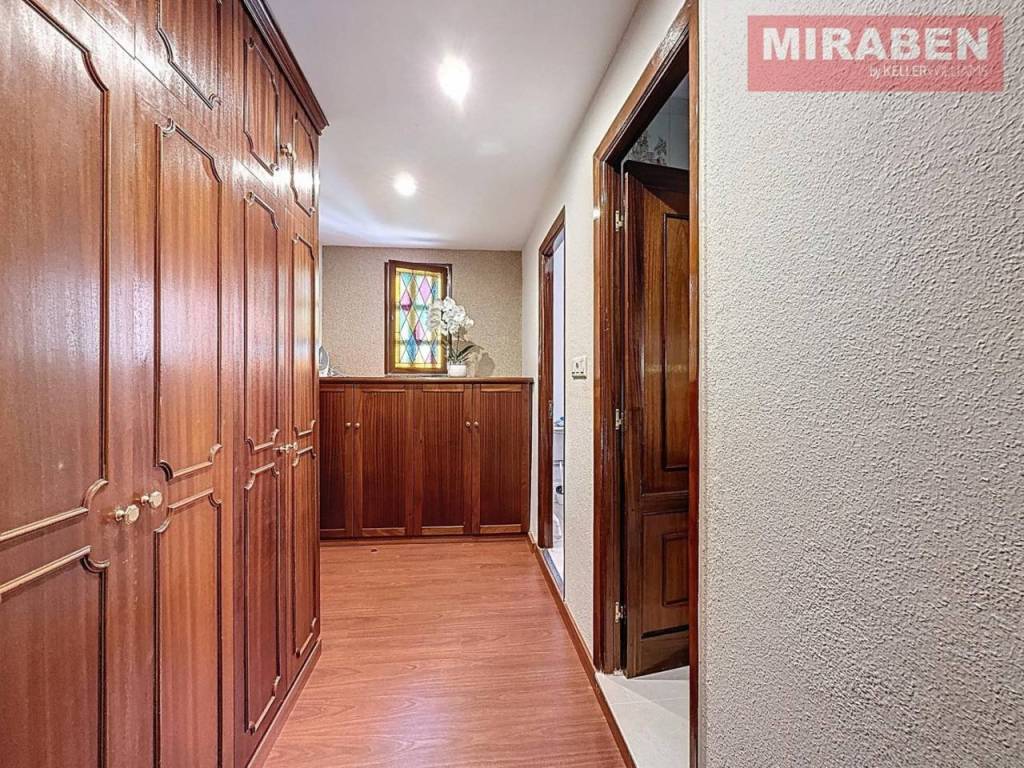Cabe destacar también la carpintería interior de la propiedad siendo esta de roble y con la carpintería exterior de aluminio/climalit. Los suelos son de gres y tarima flotante