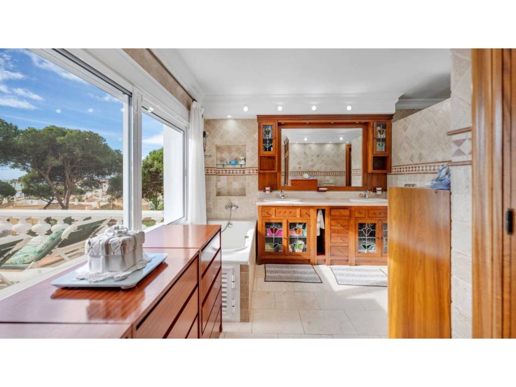 Die Villa präsentiert zeitlose mediterrane Architektur mit klassischen andalusischen Details, eleganten Balustraden und reichlich natürlichem Licht im gesamten Haus.