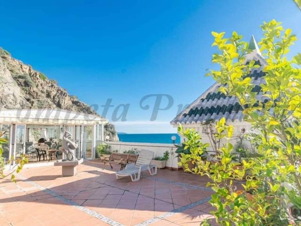 Dieses beeindruckende 400 m² große Strandchalet in Torrox Costa bietet die perfekte Mischung aus luxuriösem Wohnen, atemberaubendem Meerblick und weitläufigen Außenbereichen. Das Haus ist auf einer Ebene konzipiert und verfügt über mehrere Terrassen, darunter eine einladende vordere Terrasse und eine obere Terrasse mit Grillplatz und Wintergarten, ideal für Gäste oder zum Genießen des atemberaubenden Küstenpanoramas.