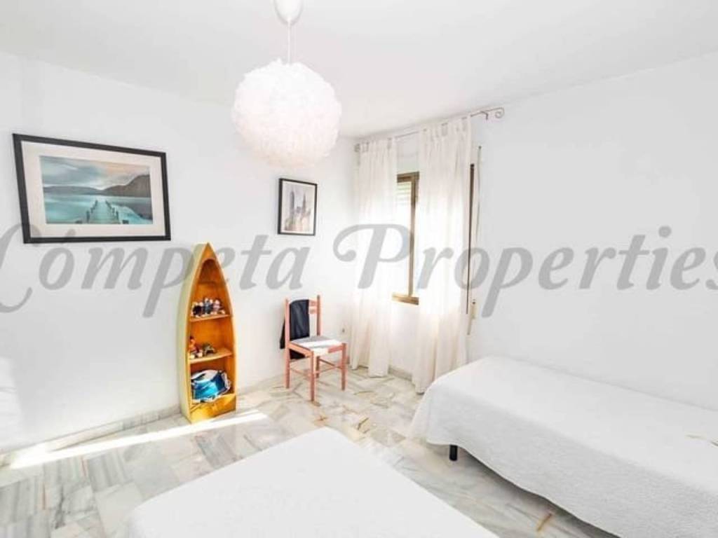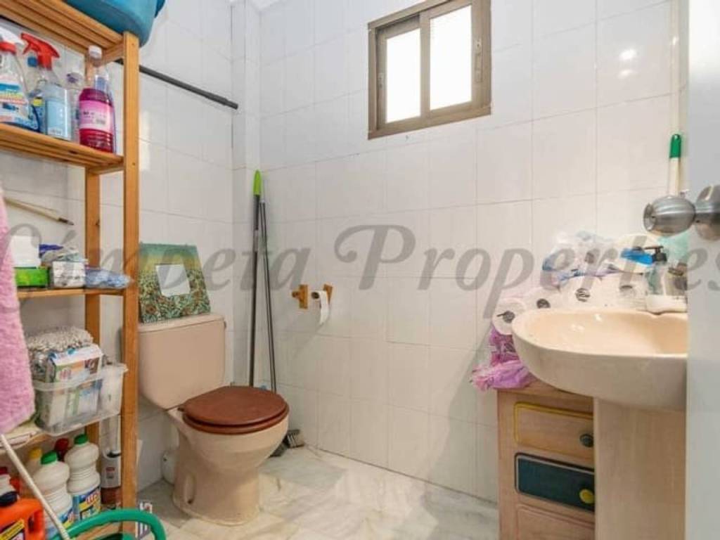 Ein Empfangsraum mit Einbauschrank bietet zusätzliche Funktionalität und Stauraum. Abgesehen von der außergewöhnlichen Innenausstattung des Chalets verfügt die Immobilie über eine private Garage mit eigenem Stellplatz und direktem Zugang zu einem der malerischsten Strände von Torrox.