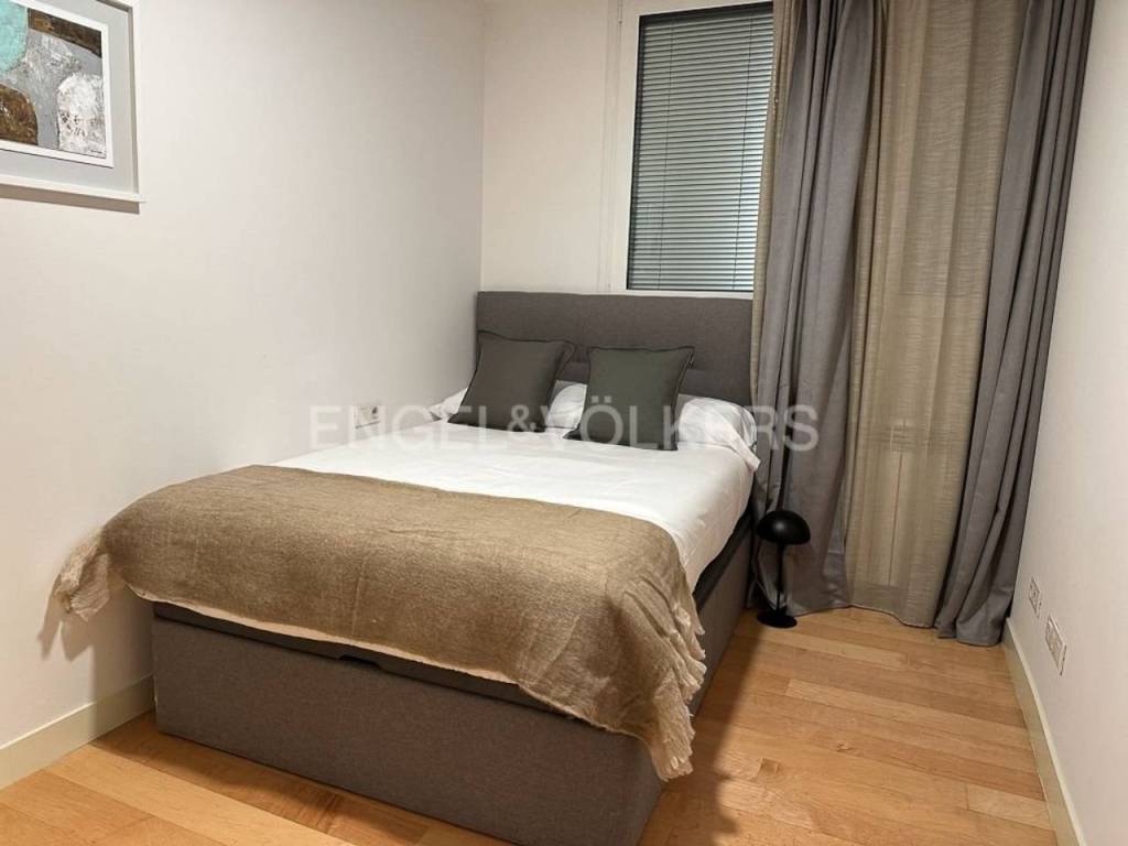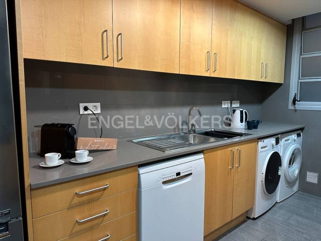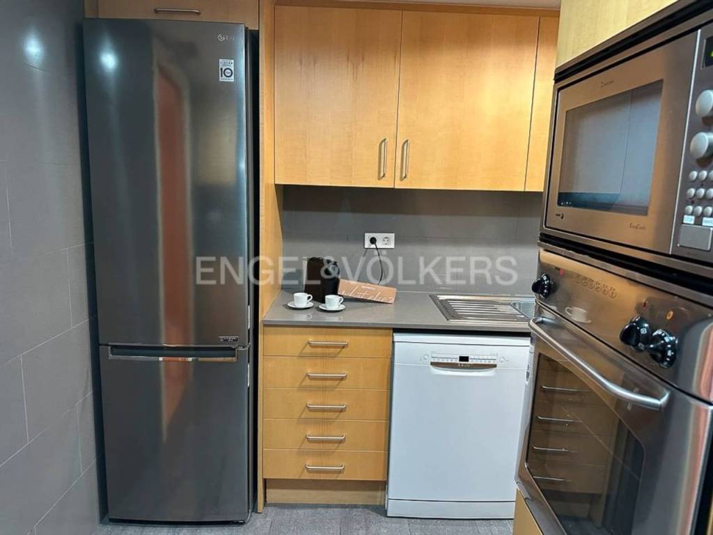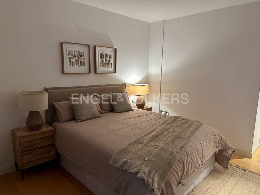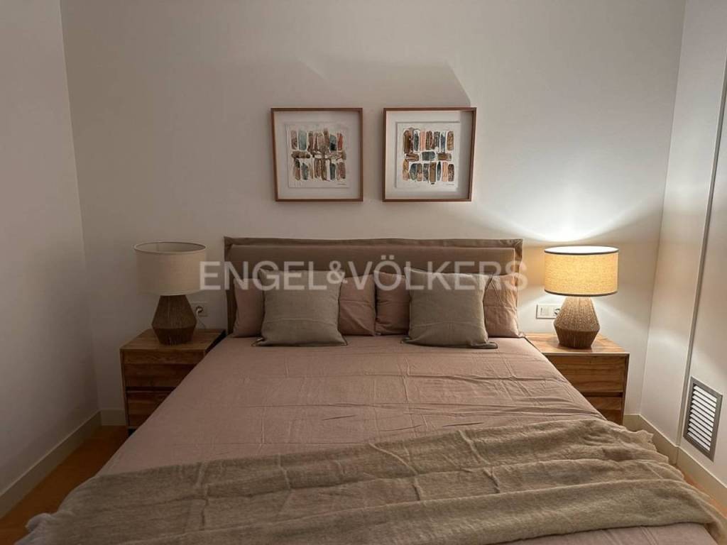 La vivienda dispone de dos amplias habitaciones, una de ellas en suite, un segundo baño y una cocina totalmente equipada con lavavajillas, horno empotrado, nevera, lavadora, secadora y abundante espacio de almacenaje. También se entrega con menaje de cocina básico.