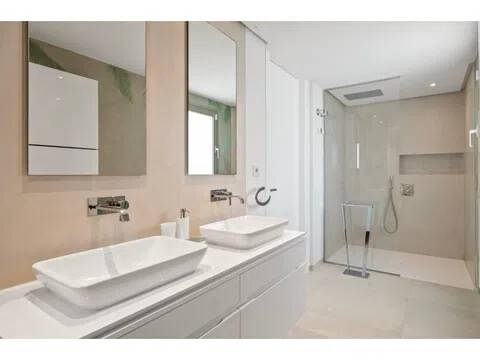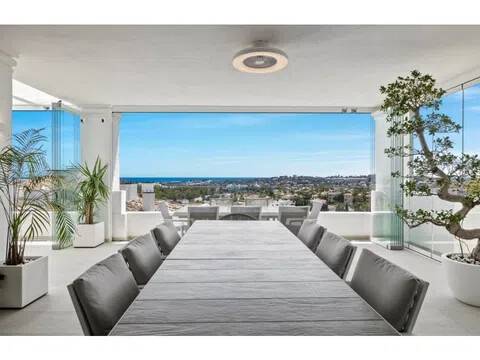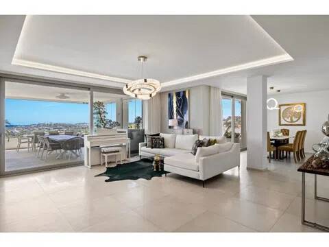 Se vende increible apartamento en planta media de 7 dormitorios y 5.5 baños totalmente privado verdaderamente único e impresionante ubicado en la urb. Nueve Leones, Nueva Andalucía, una urbanización solicitada y bien segura con 53 apartamentos únicos. Estan Construidos con los más altos estándares en 2020. Orientación sur con espectaculares vistas a la costa y al mediterráneo. A un corto trayecto en coche de todos servicios, la playa, Puerto Banús y Marbella centro. Todo en una sola planta. Entrada privada, sala de estar con chimenea, comedor con cocina abierta totalmente equipada (con electrodomésticos Gaggenau). Dormitorio principal en suite con vestidor, 6 dormitorios de invitados y 4 baño y aseo de invitados. Todos los baños de Villeroy&Boch. Sala de cine, área de lavado, depósito. Acceso directo a la enorme terraza orientada al sur con cocina de verano Napoleón y jacuzzi. Todo hecho con cortinas de cristal, una segunda sala de estar para todas las estaciones. Plazas de garaje para 3 coches y trastero adicional. Ascensor desde garaje directo al apartamento. Jardines comunitarios, tres piscinas climatizadas (dos exteriores y una interior), sauna, gimnasio totalmente equipado y casa club. Servicios de seguridad y conserjería 24 horas al día, 7 días a la semana. Los muebles están incluidos. Incredible middle floor apartment for sale with 7 bedrooms and 5.5 bathrooms, totally private, truly unique and impressive located in the urban area. 9 Lions, Nueva Andalucía, a sought-after and secure urbanization with 53 unique apartments. They are built to the highest standards in 2020. South facing with spectacular views of the coast and the Mediterranean. A short drive from all services, the beach, Puerto Banús and Marbella center. All on one floor. Private entrance, living room with fireplace, dining room with fully equipped open kitchen (with Gaggenau appliances). Master bedroom suite with dressing room, 6 guest bedrooms and 4 bathrooms and guest toilet. All Villeroy&Boch bathrooms. Cinema room, laundry area, storage. Direct access to the huge south facing terrace with Napoleon summer kitchen and jacuzzi. All done with glass curtains, a second living room for all seasons. Garage spaces for 3 cars and additional storage room. Elevator from garage direct to the apartment. Community gardens, three heated swimming pools (two outdoor and one indoor), sauna, fully equipped gym and clubhouse. 24/7 security and concierge services. Furniture is included.