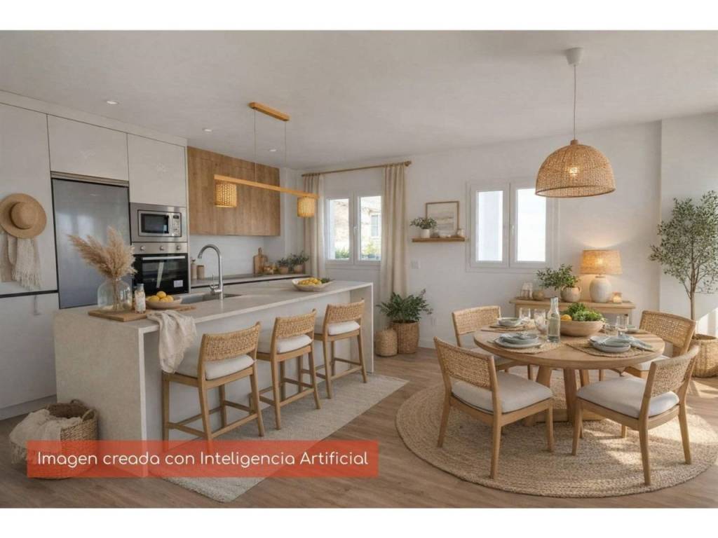 La distribución es tan funcional como elegante: tres dormitorios, dos baños completos y un aseo, todos pensados para el máximo confort diario. El amplio salón-comedor, bañado por luz natural, se abre al horizonte azul del mar creando una atmósfera serena y sofisticada. Por su parte, la cocina totalmente equipada combina diseño contemporáneo y practicidad, siendo ideal tanto para el día a día como para compartir momentos especiales.