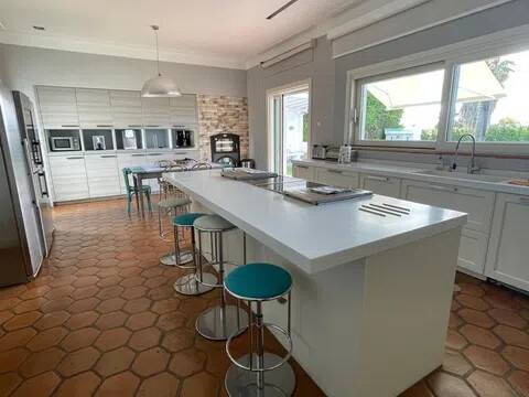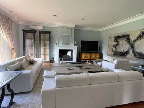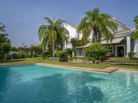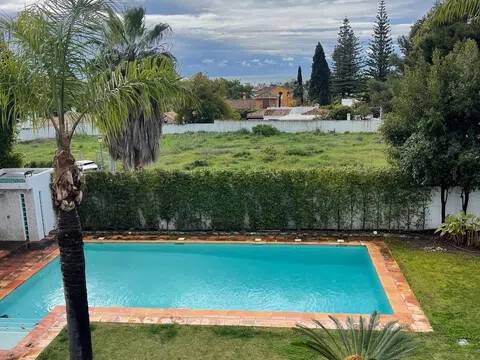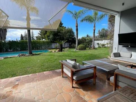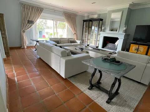 Esta impresionante villa de lujo de 5 dormitorios y 6 baños en San Pedro de Alcántara combina la elegancia andaluza con la sofisticación moderna, ofreciendo una experiencia de vida verdaderamente excepcional. Ubicada en una prestigiosa zona residencial, a solo unos pasos del Club de Golf Guadalmina y a poca distancia a pie del vibrante centro de San Pedro, la propiedad goza de una codiciada orientación sur y vistas panorámicas al mar y al jardín. Situada en una generosa parcela de 1500 m², con 491 m² de superficie construida, esta villa bellamente renovada se distribuye en tres niveles y ha sido diseñada para ofrecer confort y estilo. Las amplias zonas de estar y comedor de planta abierta cuentan con techos altos, una acogedora chimenea y acceso directo al jardín privado y a la piscina climatizada de agua salada. La cocina, totalmente equipada, incluye electrodomésticos de alta gama y una espaciosa zona de lavandería con acceso directo a una terraza cubierta. Los cinco dormitorios de la villa disponen de baño en suite y vestidor, lo que garantiza privacidad y comodidad. La planta superior alberga una oficina y tres de los dormitorios, todos con terrazas orientadas al sur que ofrecen impresionantes vistas al mar. Dos de los dormitorios también cuentan con amplios altillos, ideales como sala de juegos, zona de estar o despacho. La planta baja incluye una amplia zona de entretenimiento con chimenea, cocina abierta, área de cine y juegos, bodega, dormitorio adicional con aseo y un baño completo con ducha independiente. Las zonas exteriores son igualmente impresionantes, con jardines paisajísticos, un encantador cenador y una zona de barbacoa que invitan a disfrutar plenamente del estilo de vida mediterráneo. Un amplio garaje ofrece espacio de aparcamiento para varios vehículos. En toda la propiedad, la calefacción por suelo radiante asegura confort durante todo el año. Esta excepcional villa se encuentra a solo minutos del pintoresco paseo marítimo y las playas de Nueva Alcántara, así como del animado Puerto Banús, con su puerto deportivo, boutiques de lujo y restaurantes de primer nivel. También está cerca de colegios de prestigio como Laude, Montessori y San José. Perfecta tanto como residencia principal como refugio vacacional, esta villa representa una oportunidad única para adquirir una casa de lujo en una de las zonas más codiciadas de la Costa del Sol: San Pedro de Alcántara, junto a Guadalmina y Puerto Banús, Marbella.