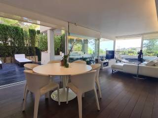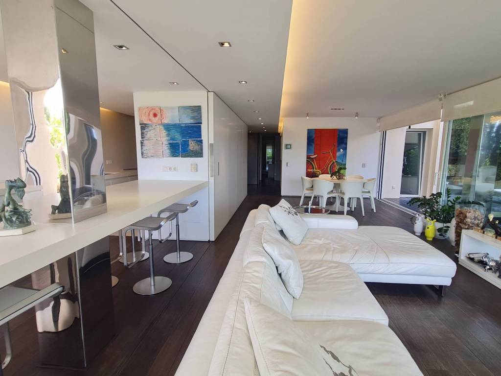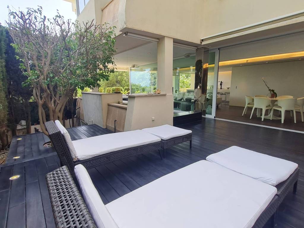 Weitere Ausstattungsmerkmale sind: Klimaanlage warm/kalt, Gaszentralheizung, Doppelverglasung, Holzböden, Schiebetüren mit Paneelen zum Schließen und Öffnen der Küche vom Wohnzimmer aus, Garagenplatz, Abstellraum, kommunale Sicherheitskameras und Haupteingangstor.
