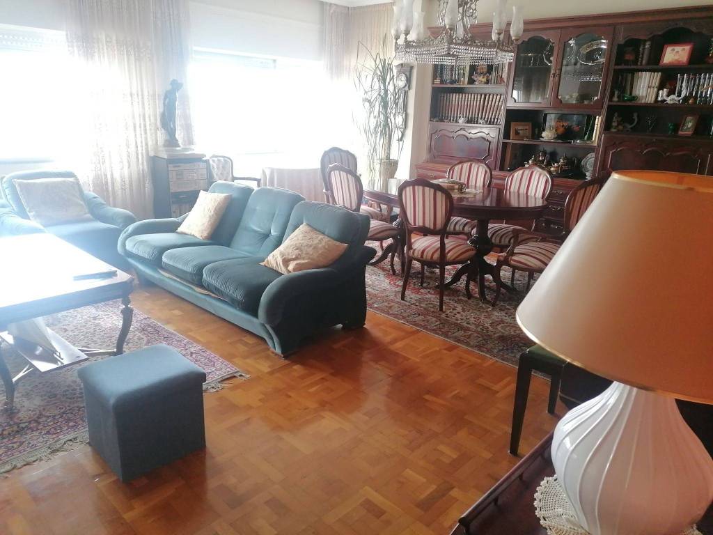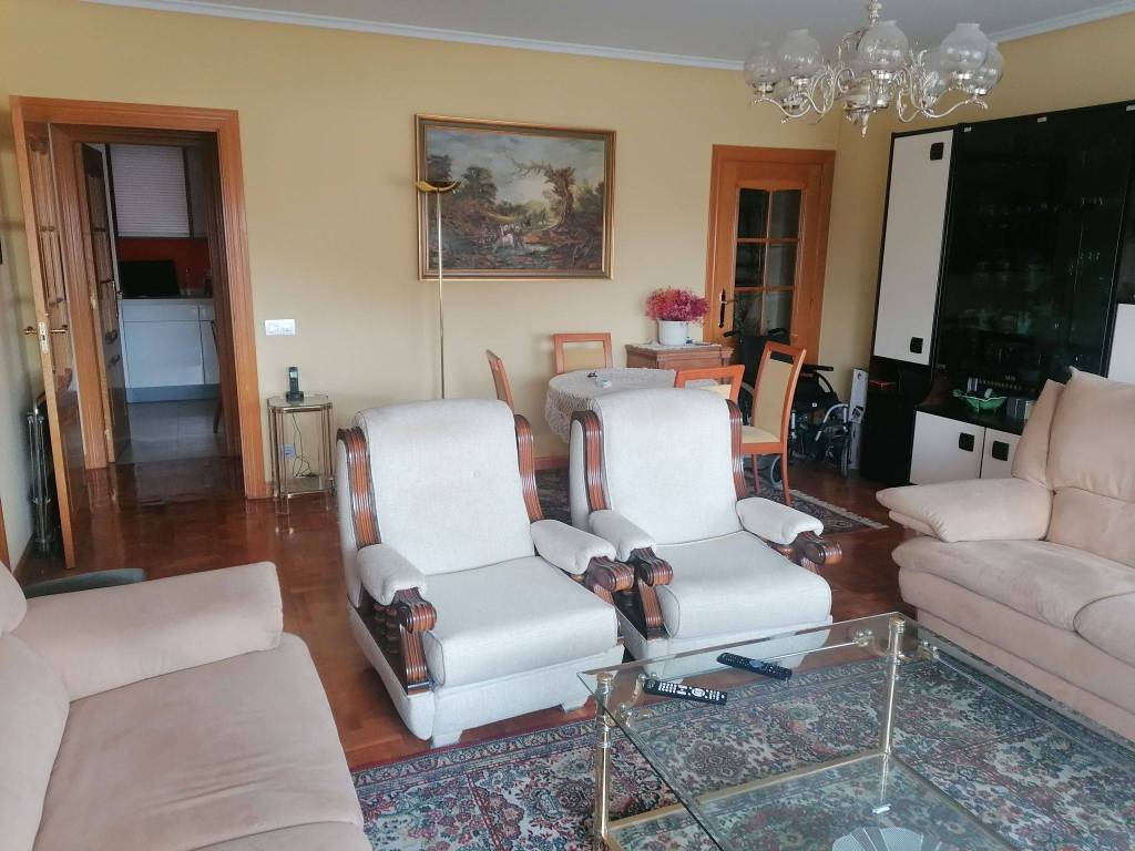 Este amplio piso de 223 m2 construidos cuenta con dos puertas de entrada, una da a una cocina con despensa y espacio para mesa y sillas. Y la puerta principal, por la que entramos a un recibidor y que nos da acceso a todas las estancias: una sala de 30 m2 y un salón de 35 m2 y, 4 habitaciones todas con armarios empotrados y 2 cuartos de baño y un aseo .