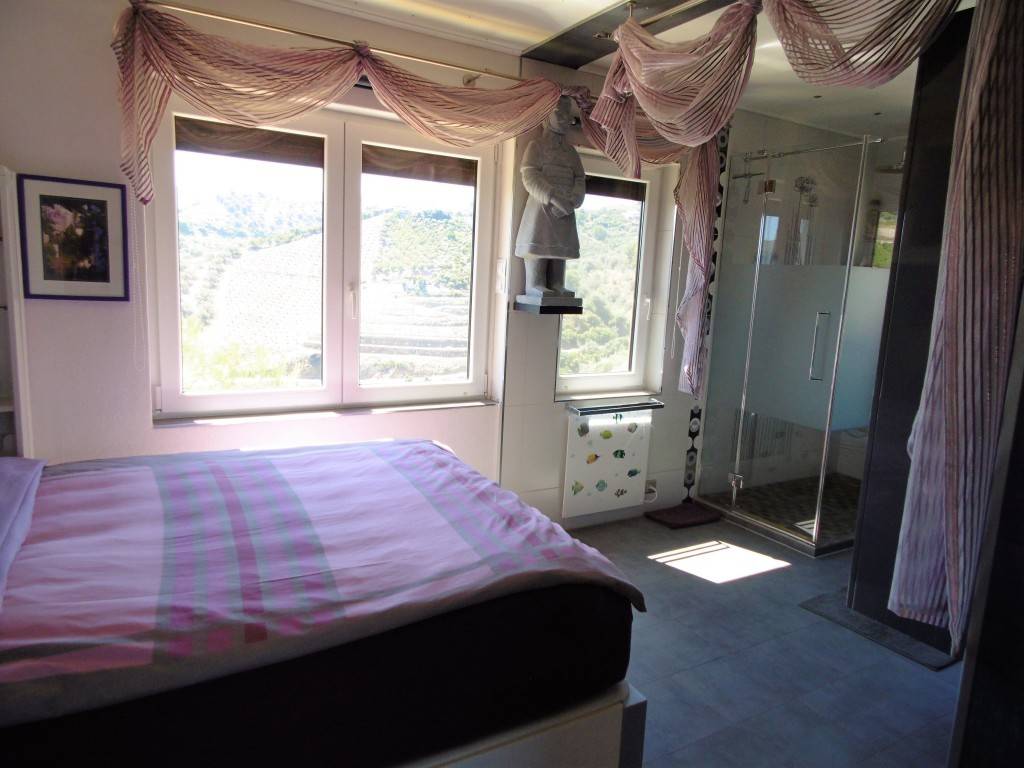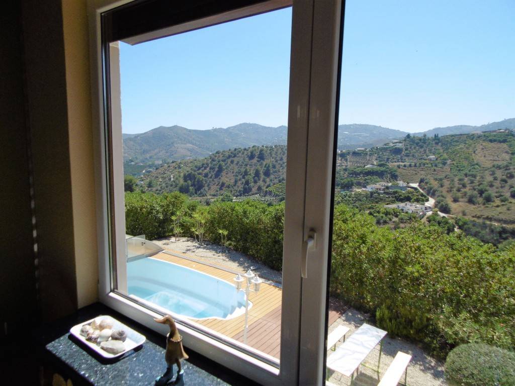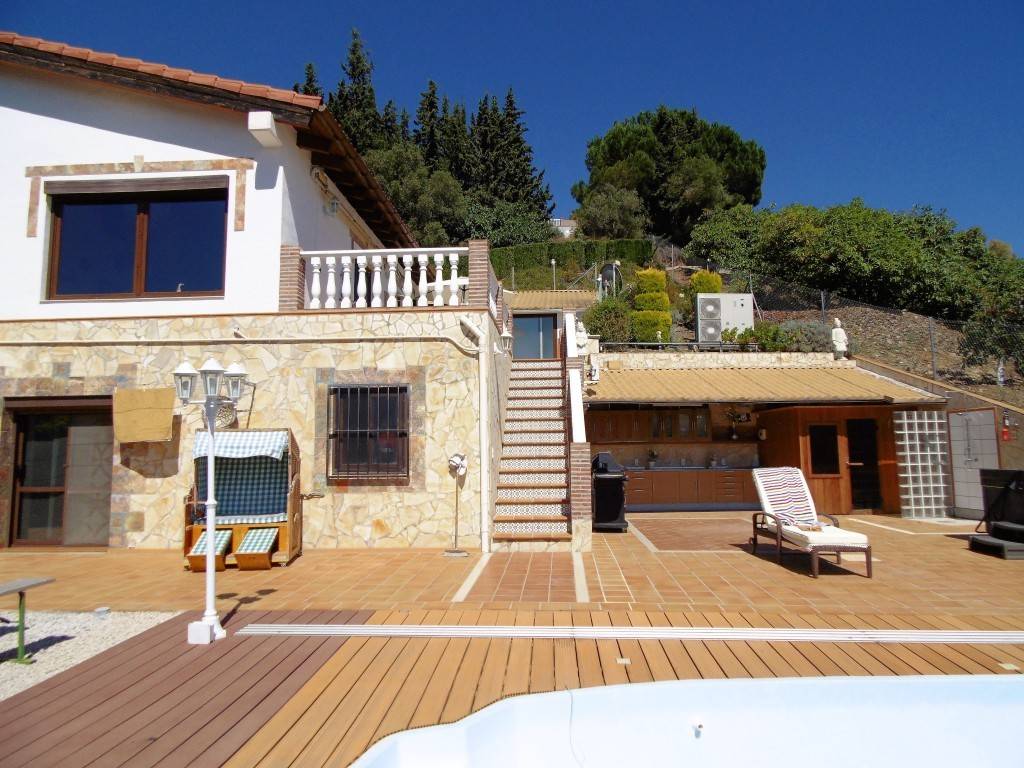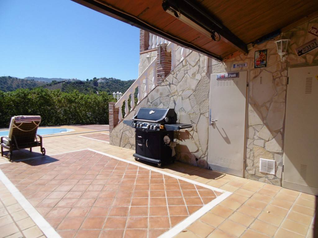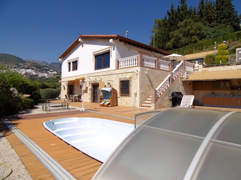 Exklusive Lanhausvilla in Nerja/Frigiliana (300 m2 WF) erbaut nach deutscher Bauqualität, Energipass A, mit 3 Schlafzimmern, 2 Bädern (1 en suite), Gäste Wc, großer Wohn/Essraum mit Kaminofen, offener, moderner Einbauküche, Hauswirtschaftsraum, Abstellraum, Fitnessraum, kleiner Kapelle, mehreren Terrassen mit BBQ Grill, Sommerküche, Sauna. Untergeschoß mit sep. Gästewohnung, Wohn/Schlafraum, großer Einbauküche mit Essecke, Badezimmer, diversen Räumen für die Haustechnik, große Werkstatt voll ausgestattet, Warmwasser Poolanlage, Video Sicherheitssystem, Fußbodenheizung und Klimaanlage in allen Räumen über Solarpanelen, Jacuzzi, Wohnwagen für Gäste, kleines Holzhaus mit WC für Gärtner, Plantage mit Mangos und Avocados (300 Bäume mit einem Ertrag von 7-10.000 im Jahr)und Gerätehaus. Die Villa wird komplett möbliert angeboten inkl. 4 Fernsehern, Beamer mit Leinwand, HiFi Anlage von Boose und Sonos. Das 5879 m2 Grundstück mit eigener Zufahrt befindet sich 1 km von Frigiliana und 4 km von Nerja entfernt.